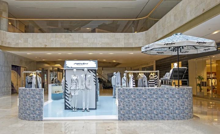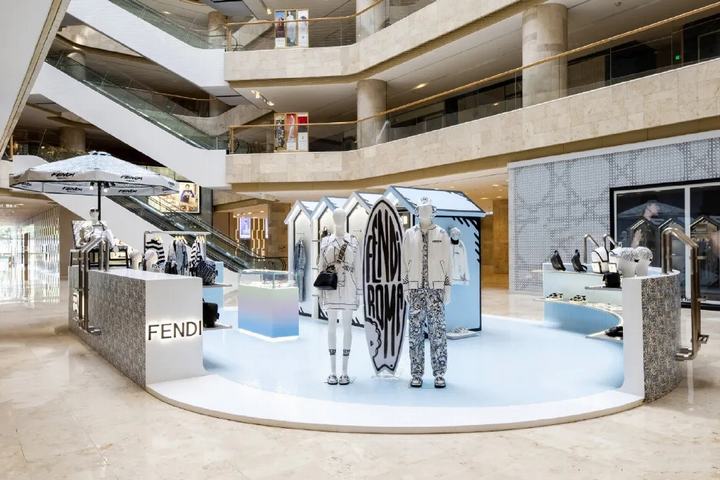 南京德基限时店酷炫来临,视觉艺术家Joshua Vides带你感受当代艺术与罗马传承的完美融合。限时店推出了视觉艺术家Joshua Vides与FENDI合作的最新系列”California Sky”,黑白手写风的 FENDI logo 贯穿了整个系列,视觉艺术家Joshua Vides 还将品牌经典的老花图案和 FENDI Stamp 也“漫画化”了。此外,Joshua Vides还有不少将立体的服装“平面化”的特别设计,白色单品上以黑色漫画风格的线条描画出了轮廓和部分细节,比较瘦的同学穿起来很有可能就真变成“纸片人”了。