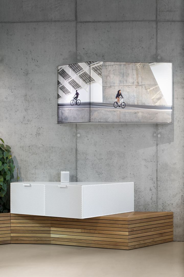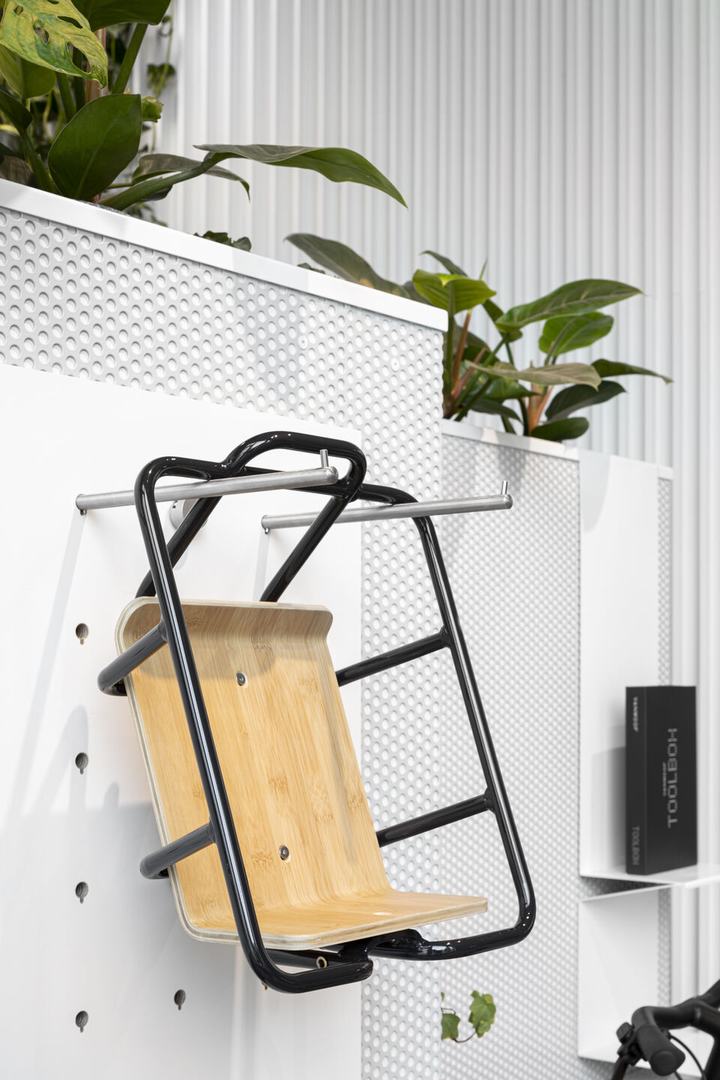 在这个“梦想之城”概念中,所有VANMOOF商店都被设计为自行车的自然栖息地。材料统一,因为所有全球品牌专卖店的内饰都是在一个地方生产的,然后才运到世界各地。每个商店都有三个主要功能:陈列室,服务点和试乘中心。