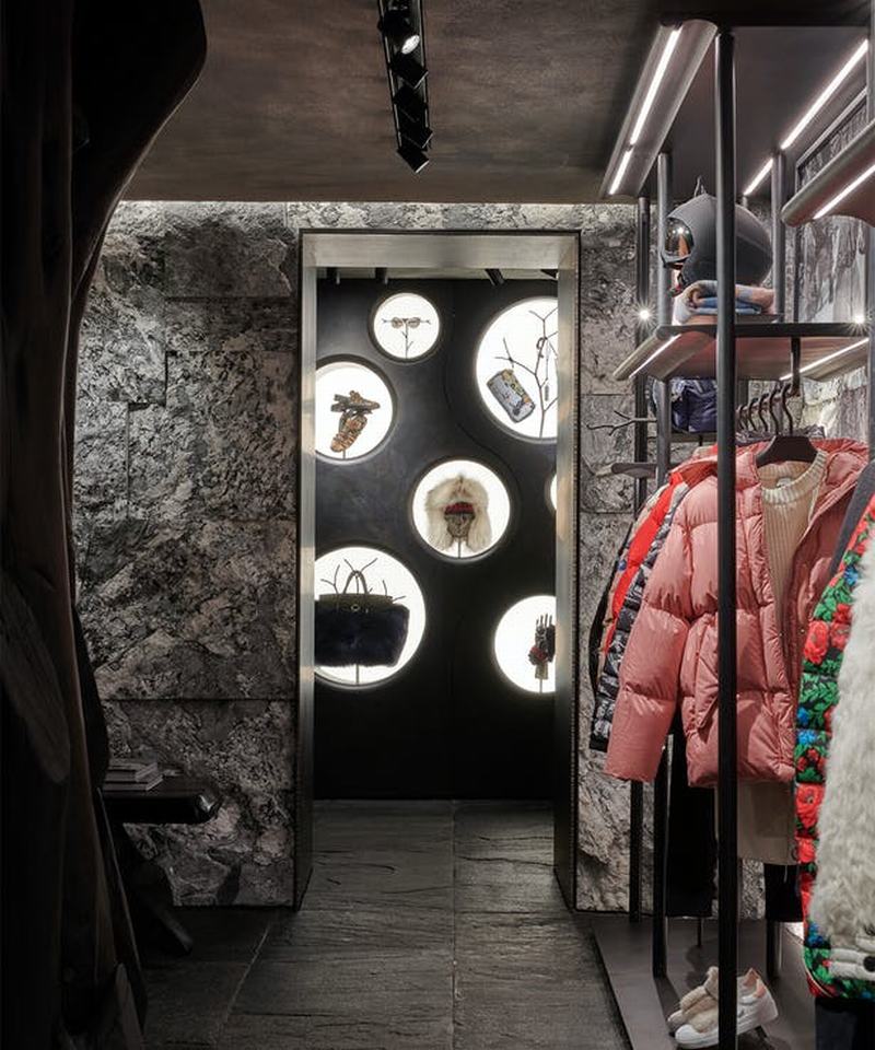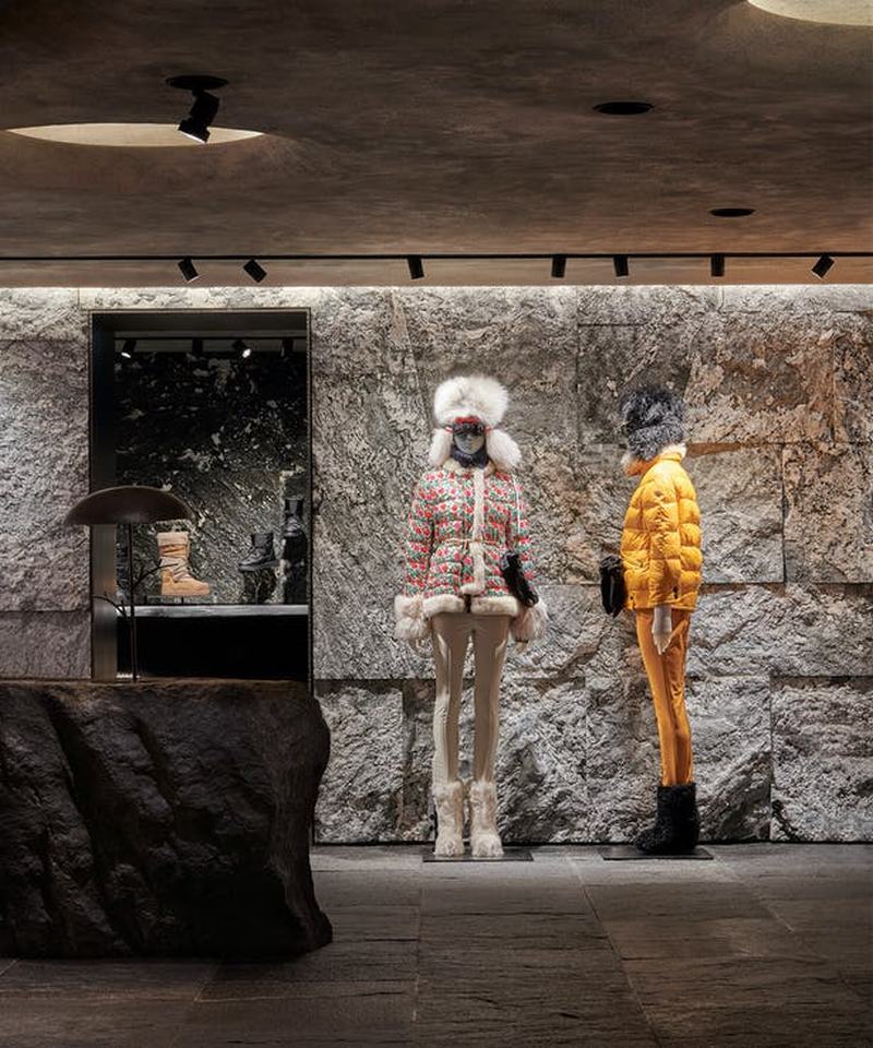 Moncler设计了一种新的商店概念。设计用了非常纯粹方法将天然毛坯材料用在了空间中,这是全球品牌Moncler能够很好的在本地扎根的原因,设计师在高山环境中为Moncler创造更真实的购物体验。