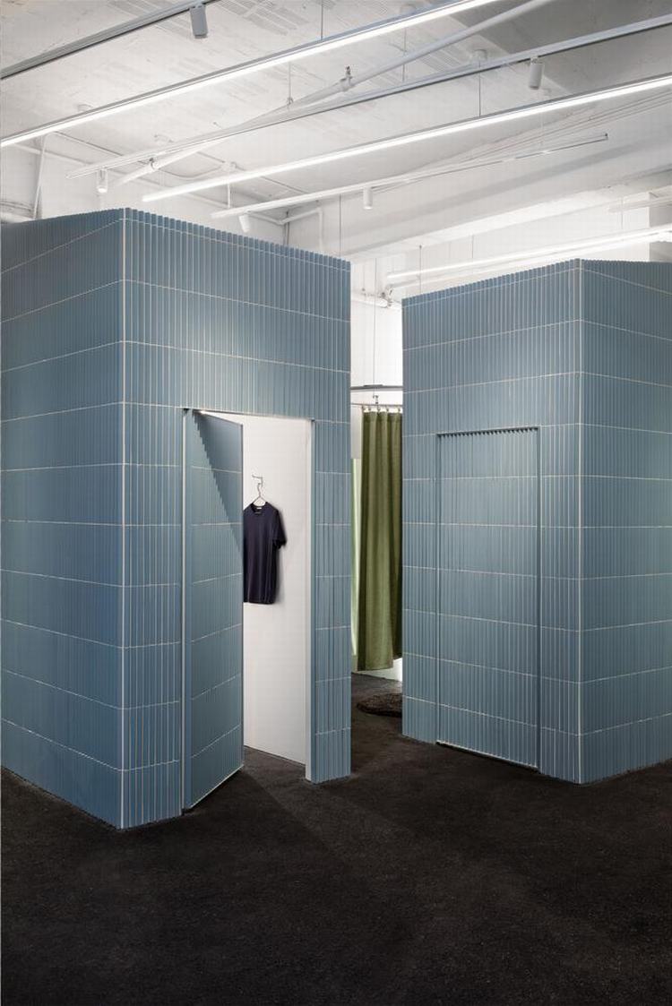 在凹进的架子旁边可以找到试衣间,其中两个是小隔间形式,巧妙地覆盖了由Ronan和Erwan Bouroullec设计的意大利Mutina瓷砖。O.N.S旗舰店除了提供精心挑选的鞋子,箱包以及家居和生活用品外,还提供各种男士服装和配饰。