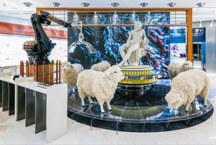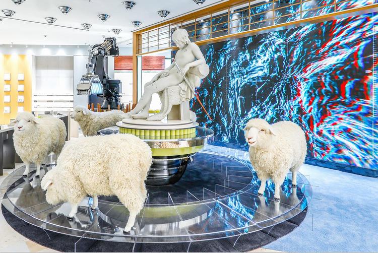 GENTLE MONSTER沈阳旗舰店以“NEW NORMAL”为主题,始于对深入人类生活的人工智能的想象。通过对大数据的收集, 人工智能牧童更细致地管理着羊群, 多种拥有未来技术的监控装置能够随时获取危险的信号,从而躲避潜在的威胁来保护羊群。在这个空间中, 体验”NEW NORMAL”及被其所占据的未来世界。