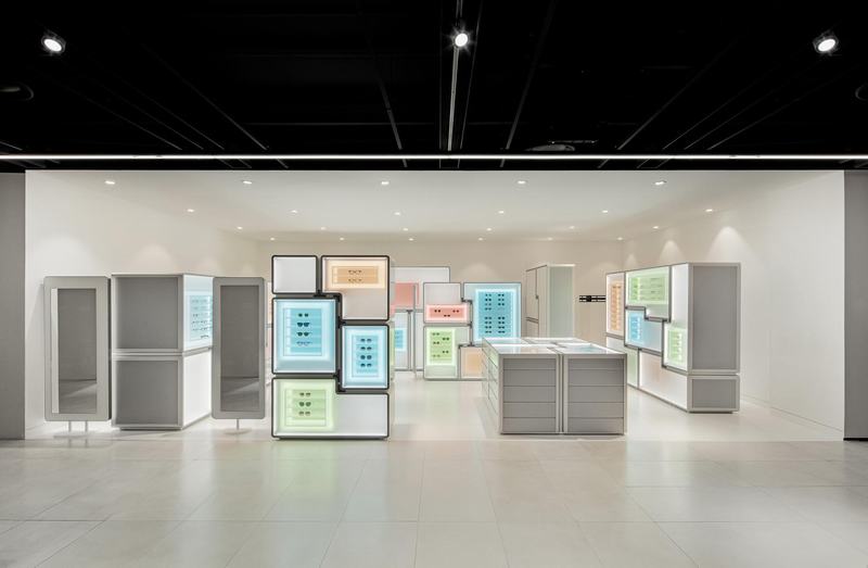 Papyrus是韩国眼镜品牌,三十多年来引领韩国眼镜时尚潮流。在过去的十年里,Archimosphere设计了一个模块化的墙壁系统,它包含了产品展示区、快闪展示区和存储区,仅针对Papyrus进行了优化。考虑到优化的模块化墙系统的现场环境,Archimosphere已设计了6次Papyrus空间。