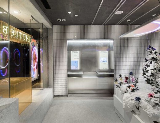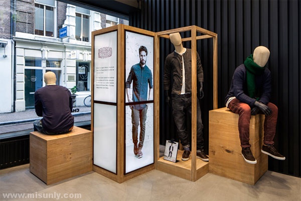 受此最新旗舰店周围的保存文化和戏剧文化影响,它的墙壁在玻璃或红色窗帘后被部分遮盖,将博物馆或舞台中的元素编织成品牌标志。工业镜子,漆面金属和挤压铝材使其他细节更加完美,这些细节将公共,民用建筑的特征转变为私人零售空间。