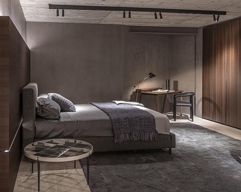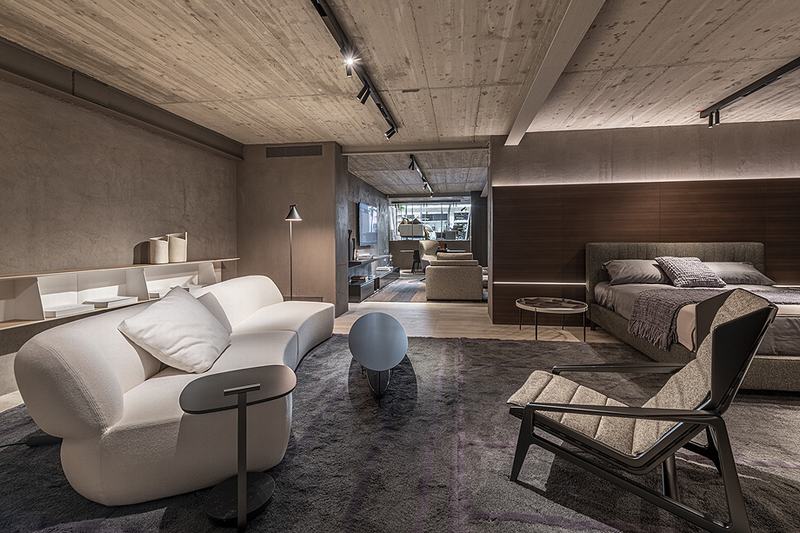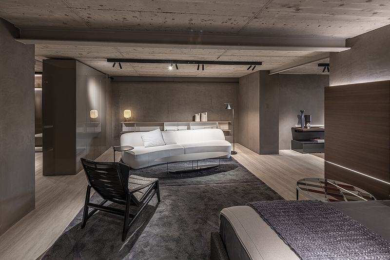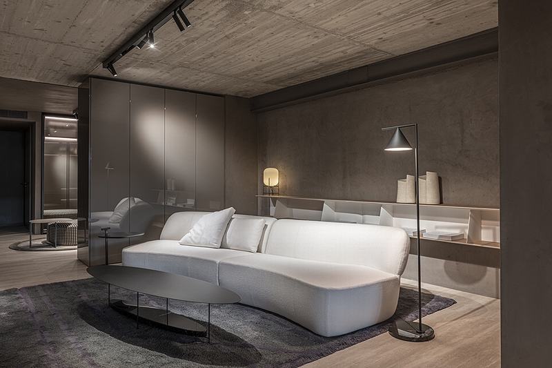 从中央楼梯,你还可以进入较低的楼层,在那里你可以看到帕特里夏·乌尔基奥拉(Patricia Urquiola)、鲁道夫·多尔多尼(Rodolfo Dordoni)、罗恩·吉拉德(Ron Gilad)、尼古拉·加利萨(Nicola Galliza)和范·杜伊森(Van Duysen)等人创作的新系列的设计。Albert的座位系统,由Dante Bonuccelli设计的Pass-Word Evolution系统,建筑师Rodolfo Dordoni设计的盖特威克新餐桌,以及Irving设计的家具,都体现在这个座位环境中,使空间优雅、舒适、流畅。在这个房间之后是一个精致的夜间区域,展示了加拿大人Yabu Pushelberg的沙发Surf, Anton的床和Van Duysen的Gliss Master 7系统,这是一个新的和巧妙的开门机制。