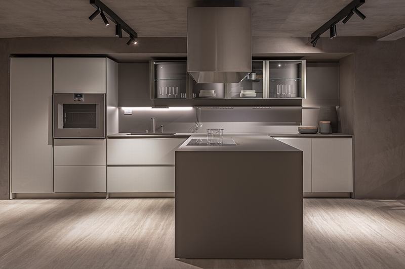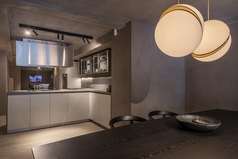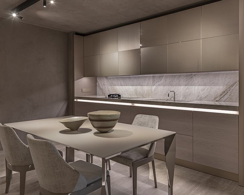 新空间占地400多平方米,通过玻璃立面向Bori i fonteta街开放,分为两层,由主楼梯连接。复杂的材料和自然的颜色(木材、大理石石灰华)与深灰色的各种色调交替出现,给展厅内的不同场景(客厅、餐厅、更衣室、卧室和厨房)留下了强烈的个性。