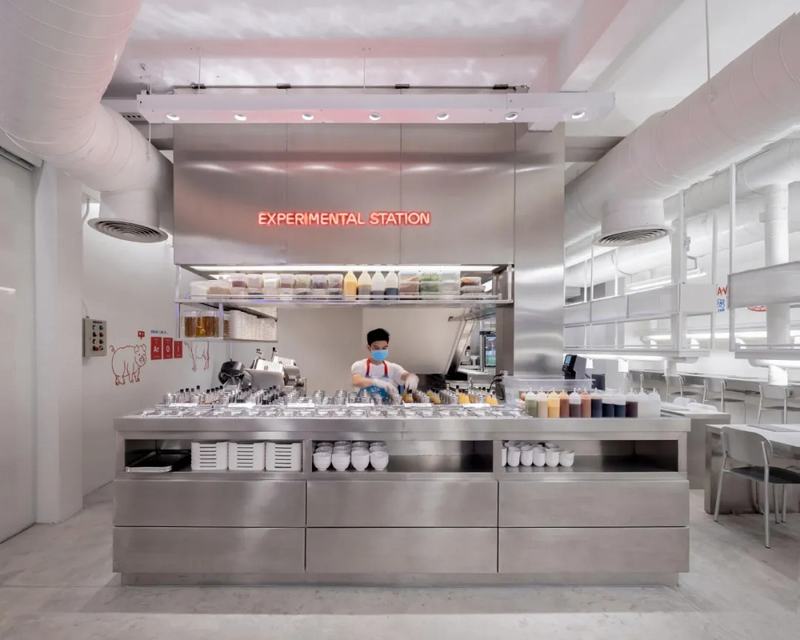 第二个重点是效率,通过将储藏室、食物准备和加急站结合在一个区域,设计师试图简化员工的工作流程。