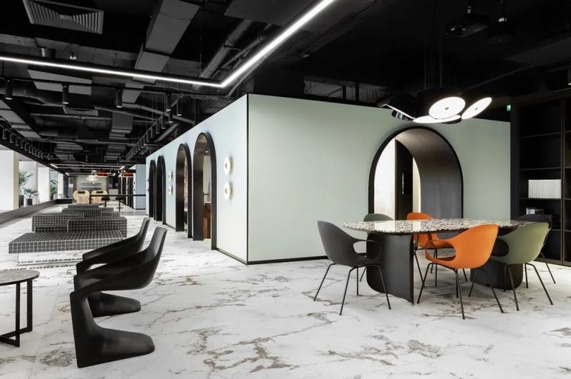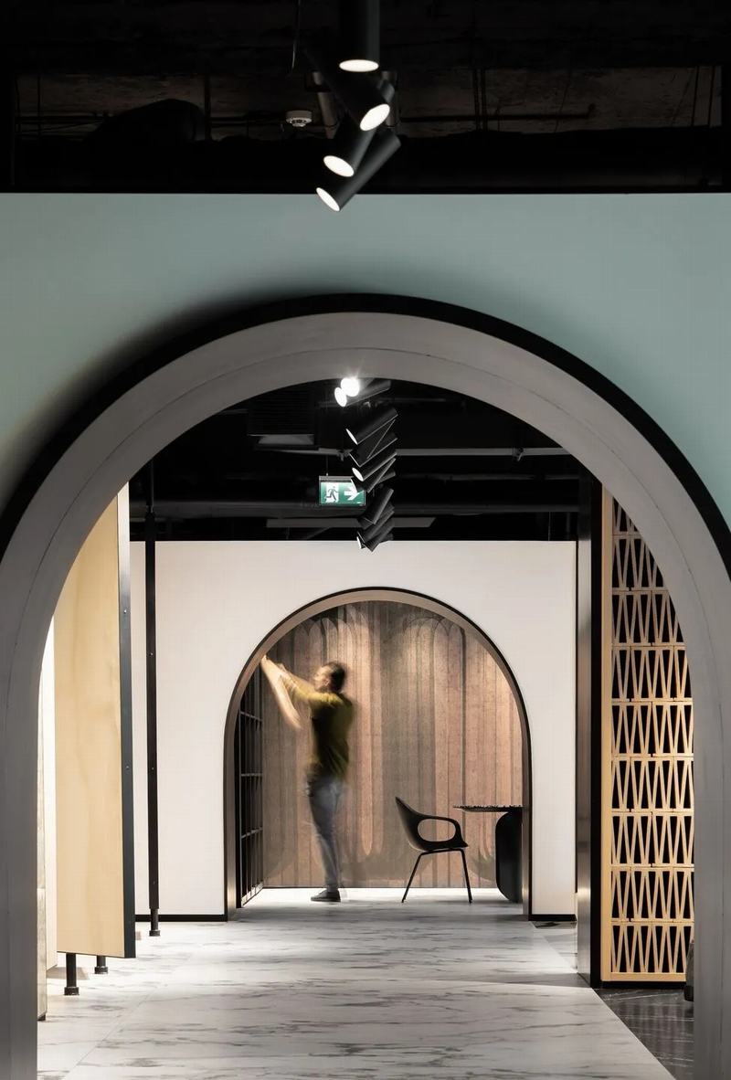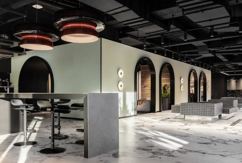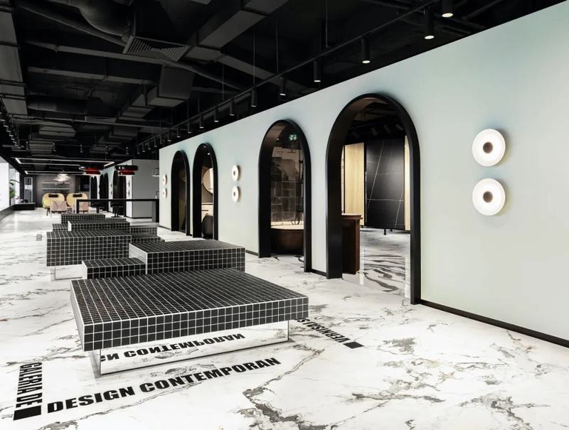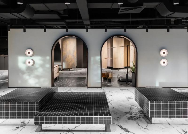 在空间上,展厅以景观方式划分为两个主要区域,考察了步行公共空间和商业半公共空间之间的关系,以及两者之间的多种可能的联系。典型的展厅设计方式发生了根本性的变化。所有的组成部分都更加微妙,它们避免了个体的支配,而是一起工作,以建立一个连贯的氛围。