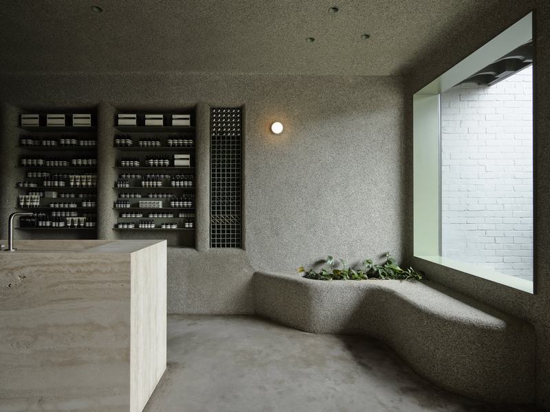 Aesop伊索的帕丁顿商店由该品牌的长期合作伙伴Clare Cousins Architects (CCA)设计。这家店坐落在熙熙攘攘的牛津街(Oxford Street)的拐角处,在格伦摩尔路(Glenmore Road)的一个安静角落里,绿树成荫的梯式入口为疲倦的路人提供了一个休息的地方。