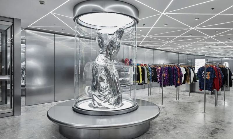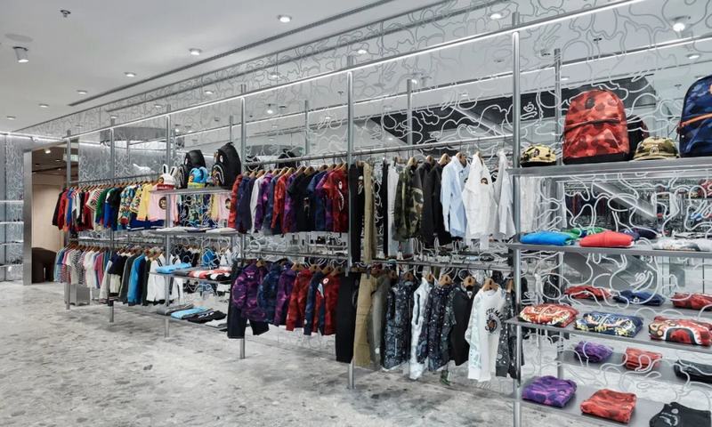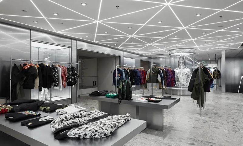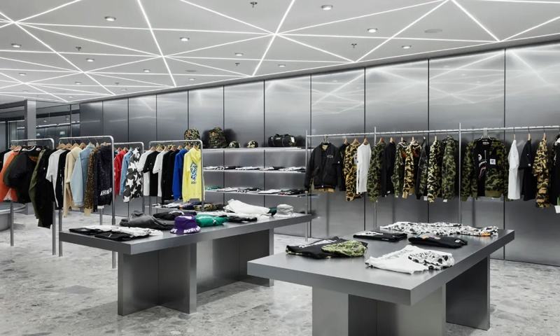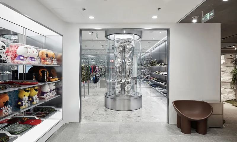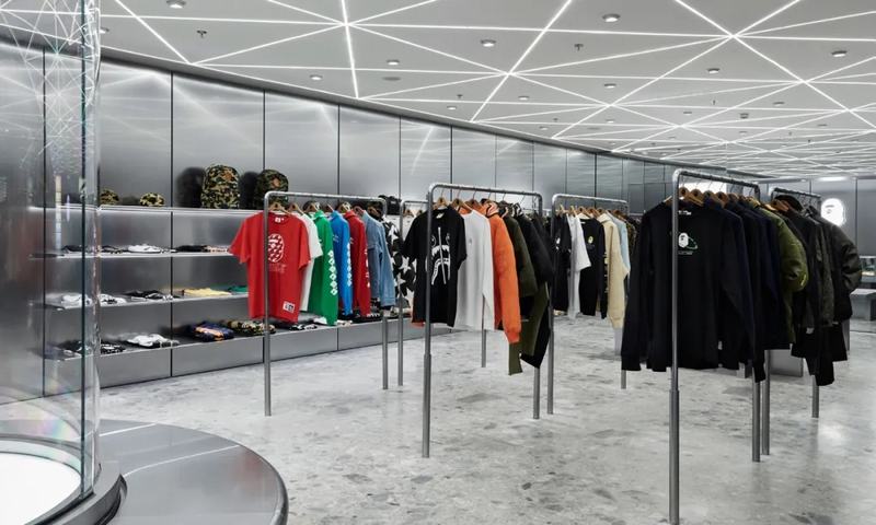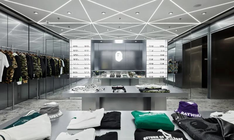 街头潮牌BAPE STORE® 最新专门店位于上海新天地,店铺总面积 2,920 平方英尺,整体以简约高级的银灰色调塑造,双层楼面设计带来充满时尚气息的空间体验。