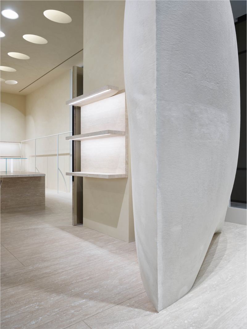 选定的美学设计首次在该品牌2018年巴黎秋冬手工展上引入石膏模型,并在立面和室内阐释了其打破传统的设计风格。因此,商店是一个抽象和吸引人的环境,根植于适当的概念。熟悉的形状在形式上倾斜,因为它们倾斜和折叠围绕着空间的界限,借鉴了Margiela Maison的词汇匆忙着装的想法。