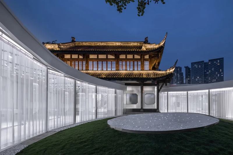 整个设计的概念是“流”。两个白色轻重量块代表趋势和生活。他们在这个传统的地方相遇,是对生命的复兴和潮流的再生的最佳回应。同时,白色屋顶的倾斜是对传统建筑檐口的现代诠释,确保了地方精神和风土的连续性。关于古建筑的木结构,我们将结构最大化,只重塑必要的立面。古建筑的室内空间和场景设计以谦虚的态度保持克制和平衡,通过光线勾勒出传统建筑的结构,不需要太多的装饰。