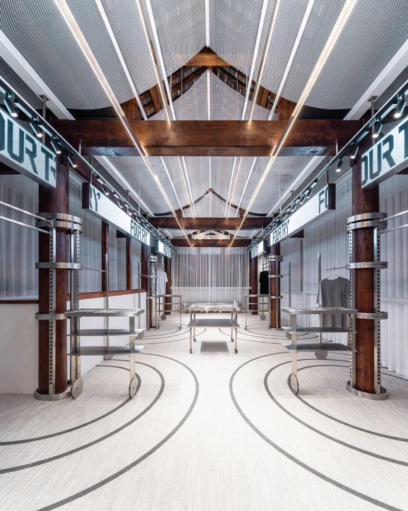 在二楼完成与着装相关的活动,然后返回一楼,您将遇到“ The Fourtry Space”pop-up艺术快闪空间。在定制的独立金属输送机中间,为静态空间带来视觉上的流动体验。