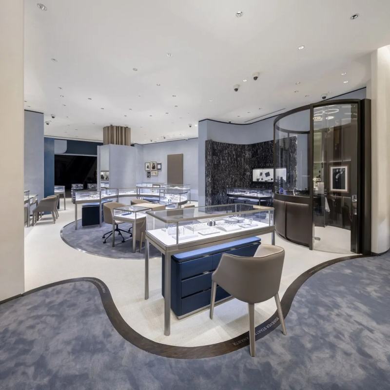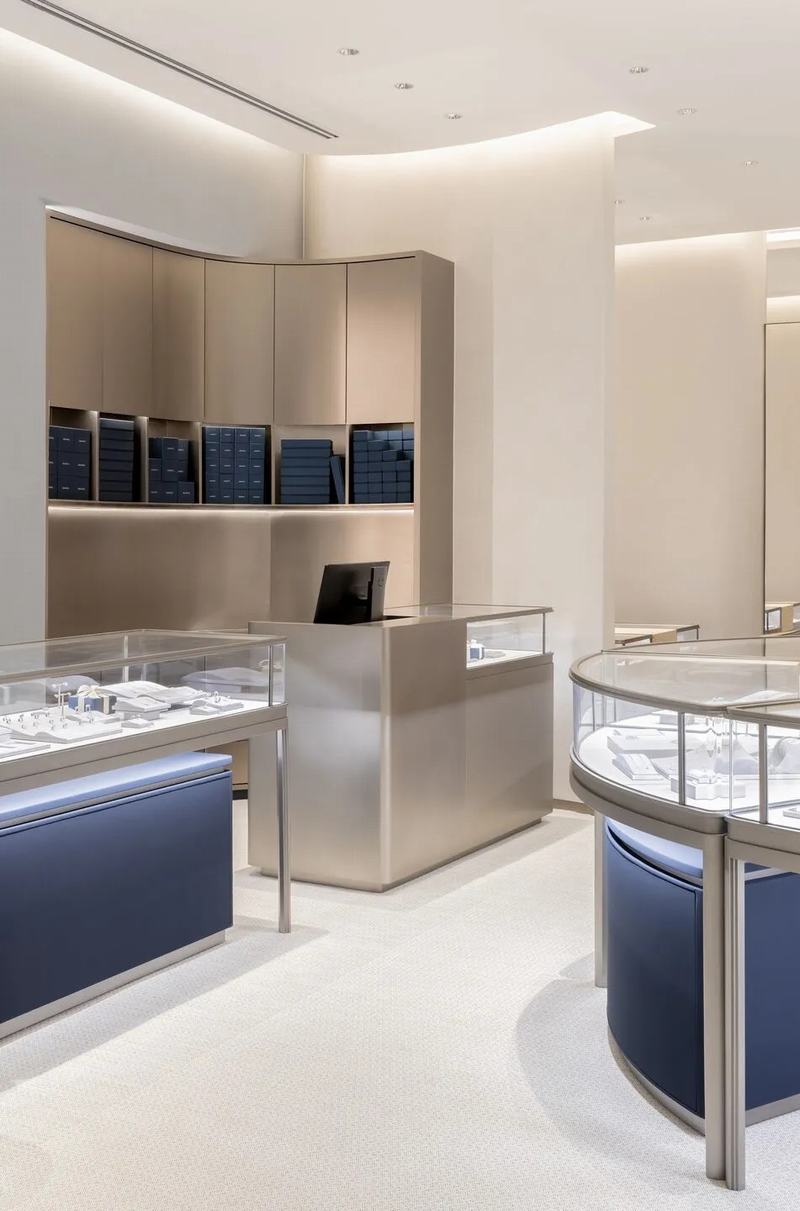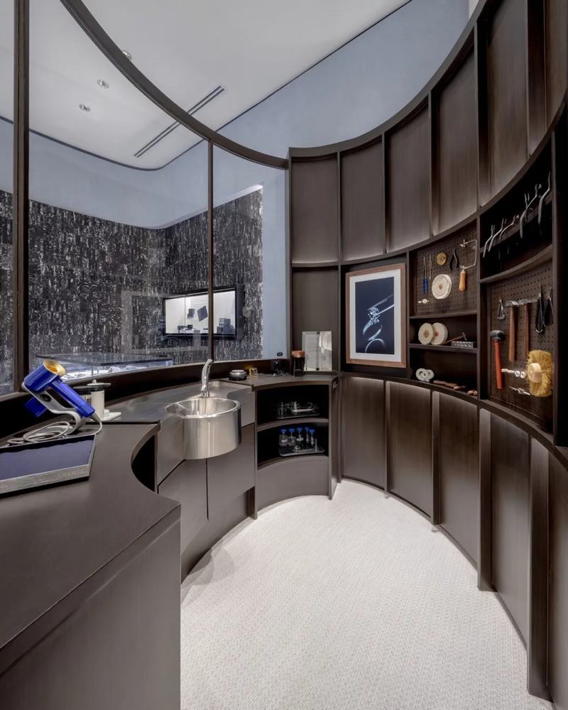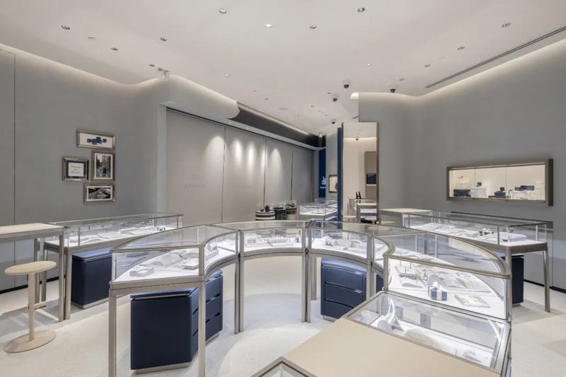 该设计将室内划分为三个部分。“生活方式”部分占据了大约70%的空间。为了展示该品牌的生活方式珠宝系列,IF将奢华与乐观精神和好玩的噱头相结合,使该地区看起来不那么令人生畏,更容易接近。业主可以调整装修,保持空间和用户体验的新鲜和刺激。