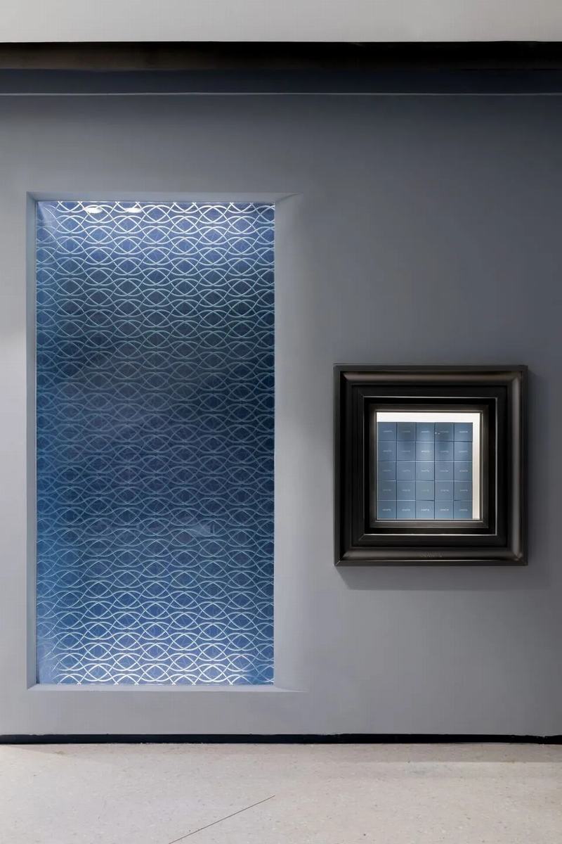 室内空间和环境图形设计使用的色调与该品牌的原始和新公司色彩相对应。从正面看,由于蓝色和海军蓝色的存在,这家商店的整体气氛看起来更加生动。棕色是该品牌的原始公司色彩,与白色以及其他装饰元素(例如家具)一起使用。