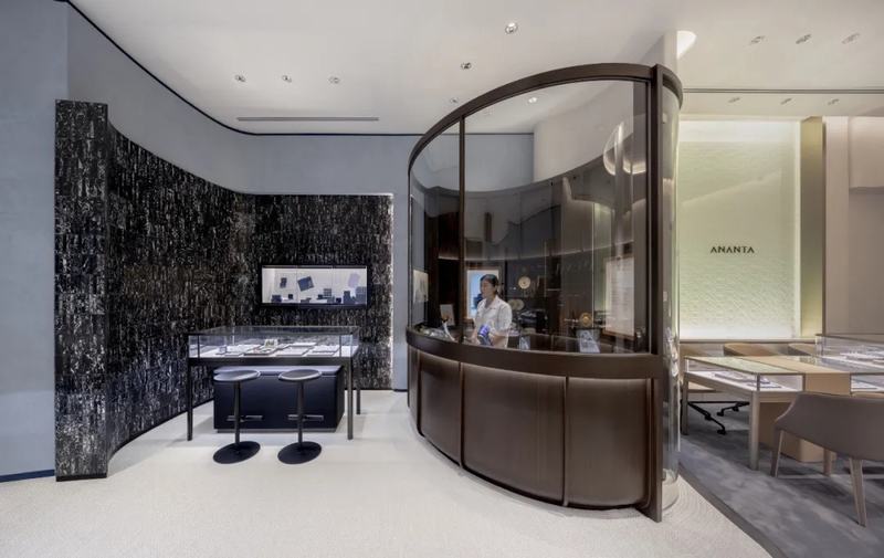 “ Moment”(用于定制样式和价格的生活方式珠宝产品的区域)旨在体现有趣和优雅的氛围。最后一个区域“新娘”侧重于结婚戒指,传达女权主义和梦幻,活泼的女性精神。“高级珠宝”专区的设计特色在于源自ANANTA品牌的产品,其精髓依然精巧,却更加友善和温暖。