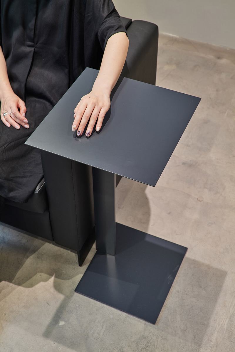 悬臂结构给人的感觉是桌子的薄面板是漂浮的。 将多个钢板组合为设计细节,可使桌子具有更多的3D外观,并且在不同角度下呈现出不同的样貌。