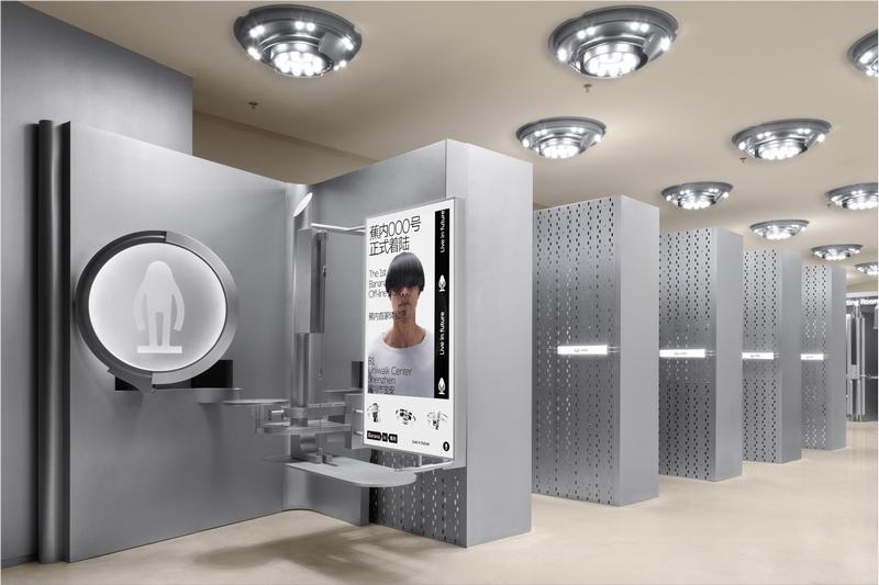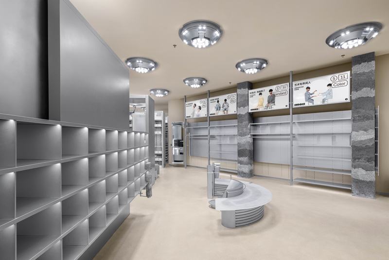 室内应用的几何系统旨在偏离其刚性,进一步激活消费者和场地之间的互动。深入概念店,可以感受到不同纹理的叠加嵌入空间,如墙面、装置、精心设计的单元,将体验和城市景观的包容性转化为具有现实设计力量的异质空间。随着人们在店内或快或慢的漫步,场景不断叠加、消失或生成,一个订单以个人的参观体验的形式出现。