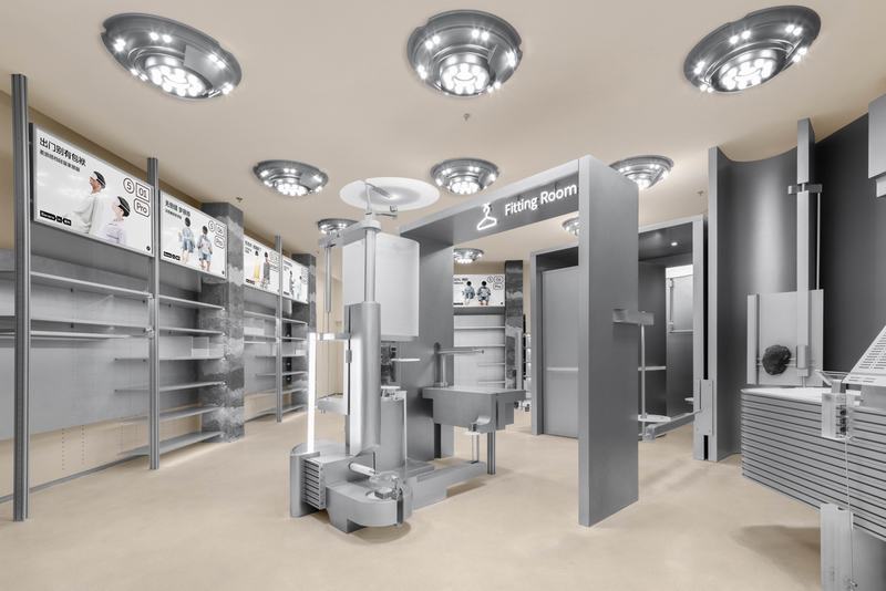 作为一个“技术和设计驱动”的内衣品牌,Bananain致力于将面料技术,质量机制和数据反馈整合到产品设计中。该商店的设计灵感还源于香蕉产品设计中交织的技术和订单感。设计师在设计的装置和单元相对固定的状态下,精心创建顾客与空间之间的驱动关系。