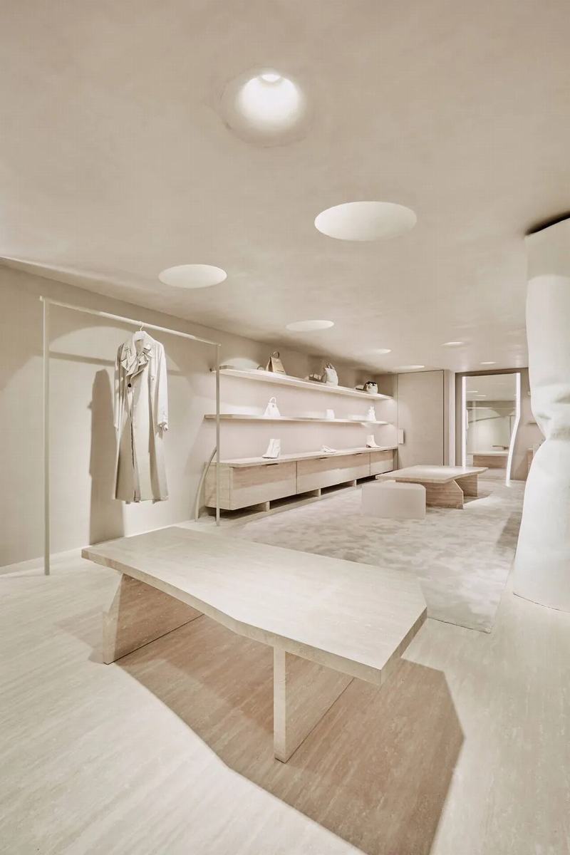 石膏墙和柱子的表面保留了织物纹理、雕刻凹痕的记忆,并唤起了不可复制的手工纺织触感的概念。商店鼓励创造它的人情味。这些结构保留在天然的灰泥中-墙壁的内部不起眼-反映了衬里匿名的作法,这是用来揭示传统上被隐藏的衣服内部并揭示内部工作原理的室内术语。石膏的自然色调进一步呼应了Maison Margiela的招牌白色。Misfit家具的设计是基于对经典物件的记忆,在形式上进行解构。