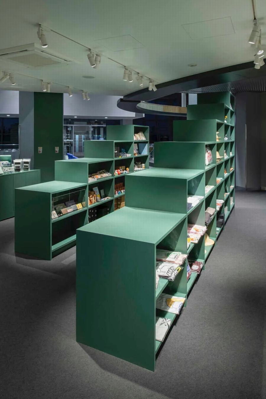 我们首先想到用像书架一样具有密度感的家具来构建整个空间。当人置身于书架成排排列的图书馆那样的空间时,直到找到想要的书为止,都能感受到发现并挑选的乐趣。