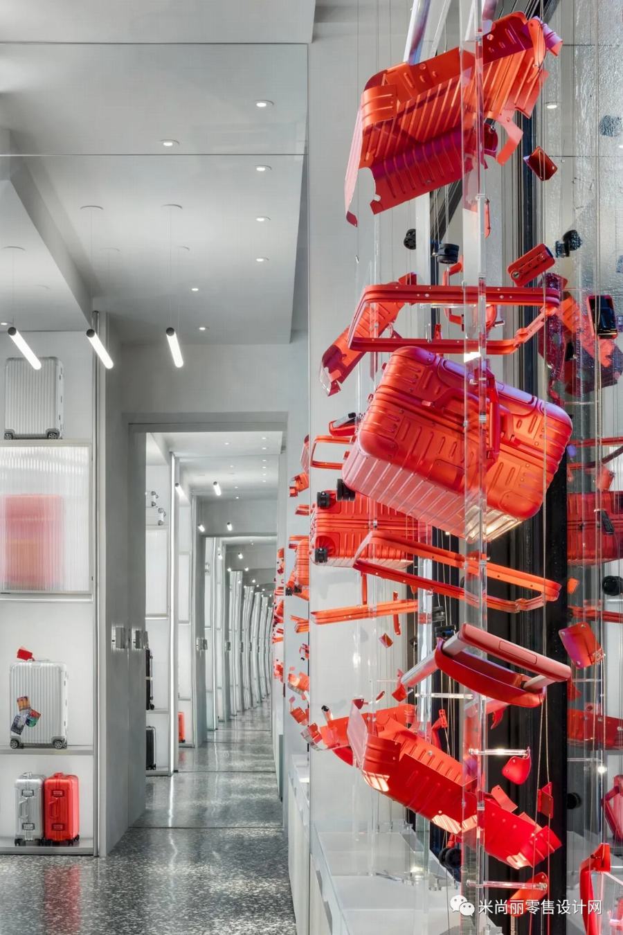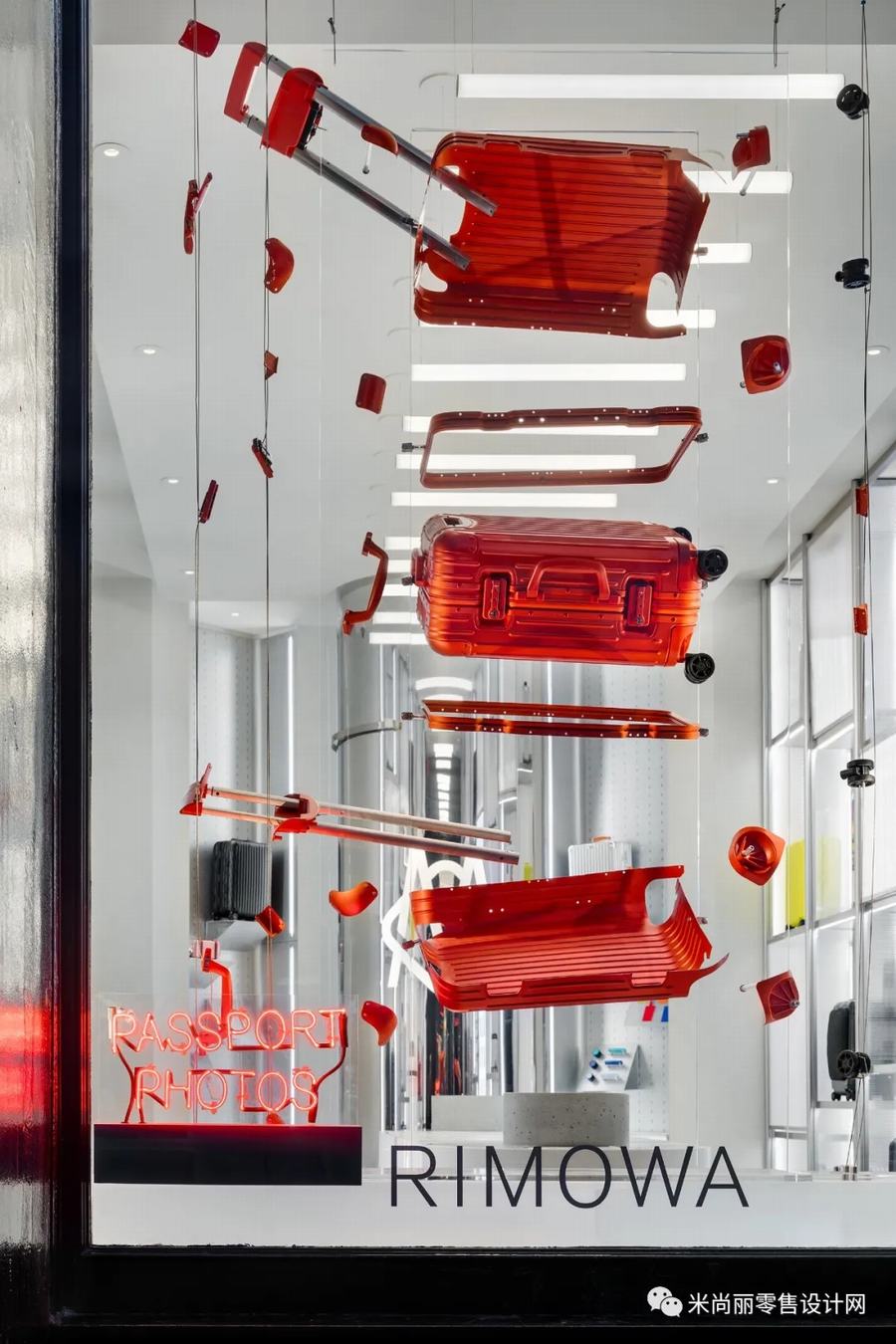 Rimowa 的商店凭借其光鲜的外观和护照照相亭,充分体现了旅行的兴奋和活力。