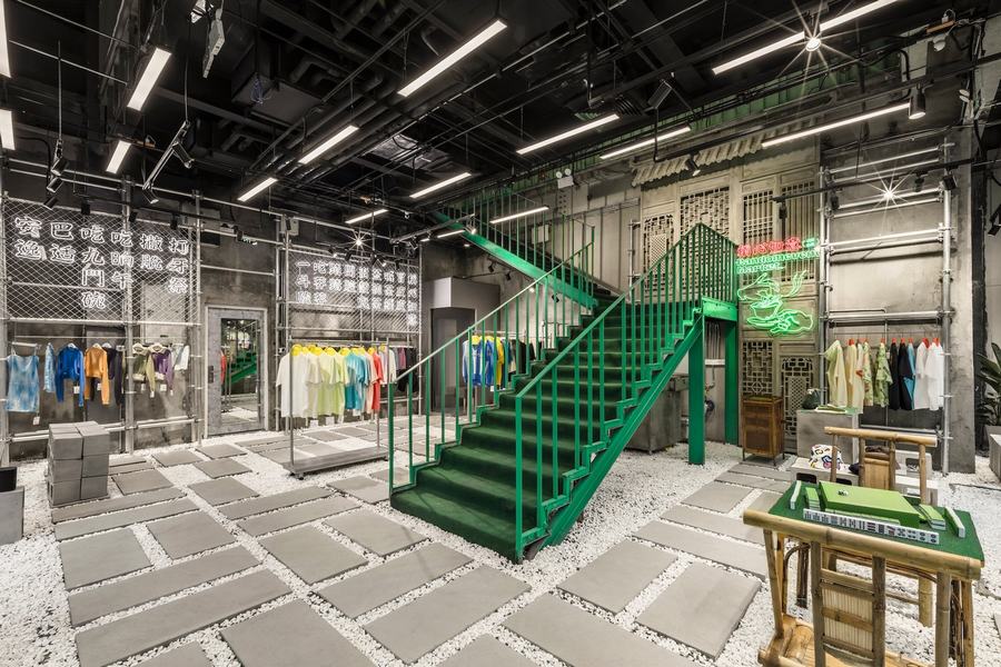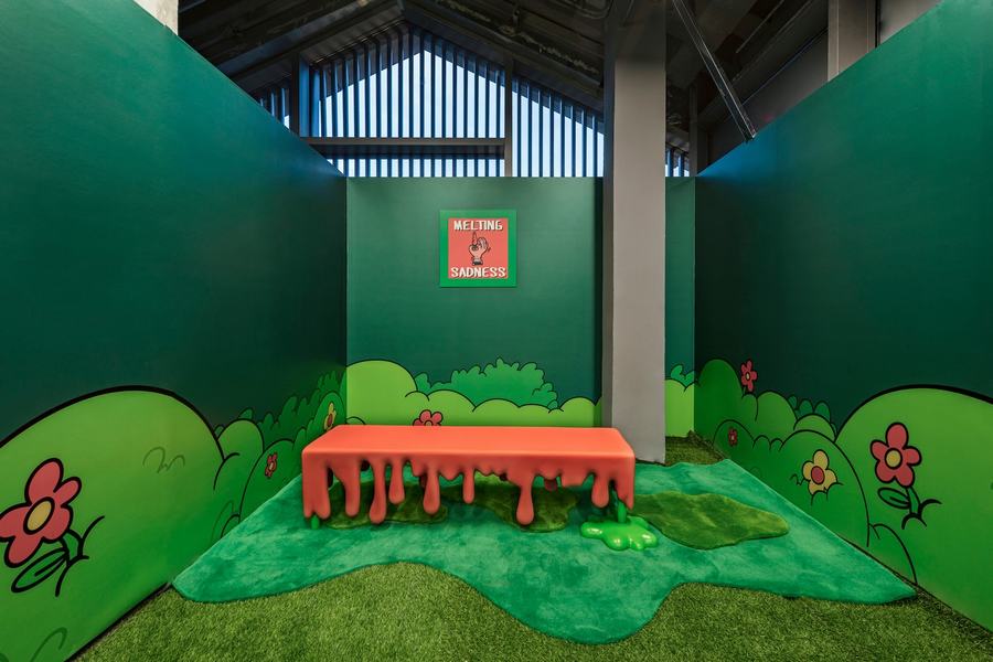本次 Randomevent 限时快闪以成都特色的茶铺文化为灵感,一层是独具天府特色的龙门阵茶馆,有座、有茶、有麻将,安逸得称心如意;店铺二层则是由艺术家张权主理品牌 MeltingSadness 打造的秘密花园,打开融化的穿梭门,有竹、有辣、有小花,聚集可爱能量,为大家带来「100% FRESH」的新鲜体验。