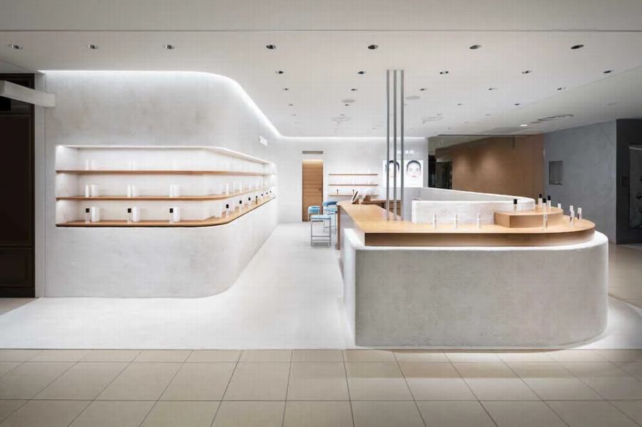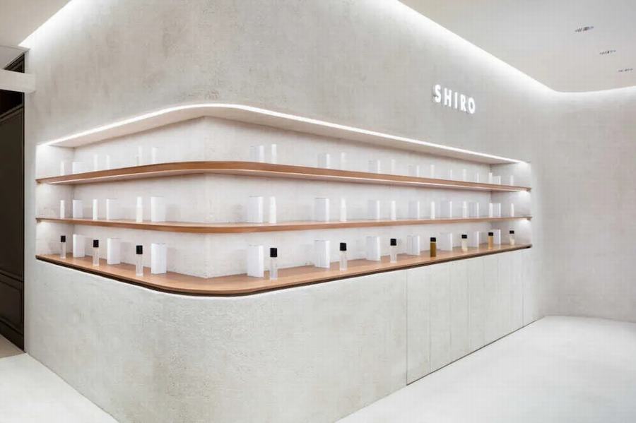 化妆品品牌“ SHIRO”的商店设计,提出了坚持天然材料产品的店铺设计。最新店铺位于北千住站直接相连的购物中心内,是一个繁忙的角落,两侧面向公共通道。
