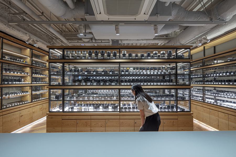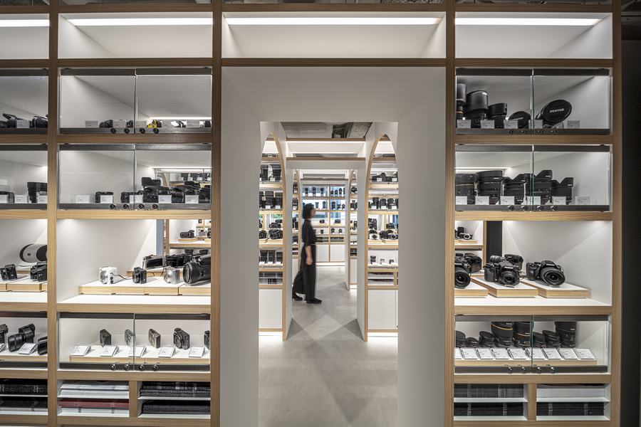 每层的概念是:一楼:“一个入口开放城市”,二楼:“诱人隧道”,三楼:“架空架子创造的舒适感”,4楼:“收集和存储的感觉”,五楼:“一个有组织的研讨会,信任是可见的,6楼:“日本品质和实用性”。我们期待着这座建筑未来在新宿的存在和影响,新宿是相机的圣地,更不用说对空间细节的热情关注,这与相机的机械精度相对应。