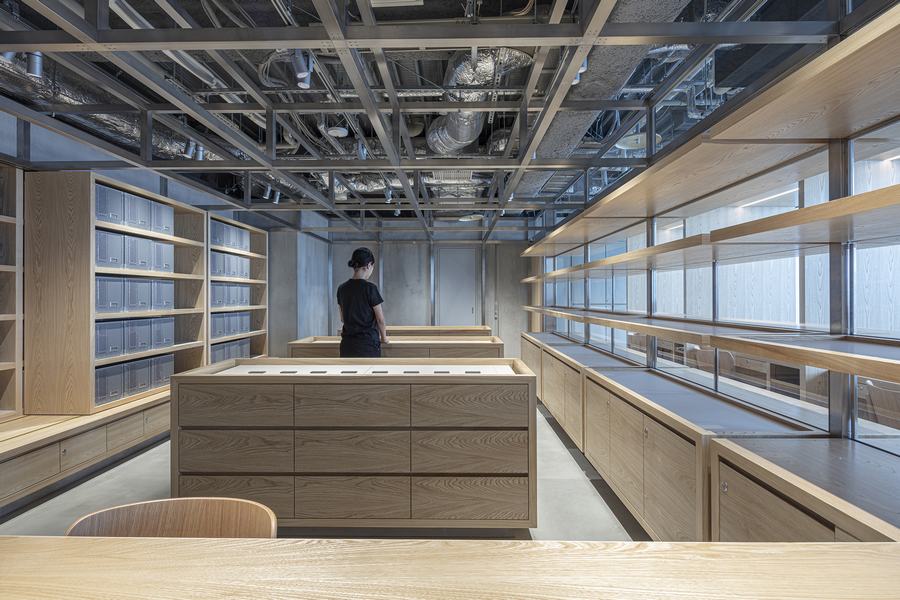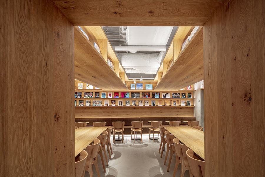 除了出售相机和配件,书店还提供打印服务、维修、图书休息室和活动空间。这个空间的设计理念受到了“暗箱(暗室)”的启发,这是相机的起源。该建筑有七层,从一层地下室到六层地面,特别注重每一层的布局和流动规划以及相关的标志。