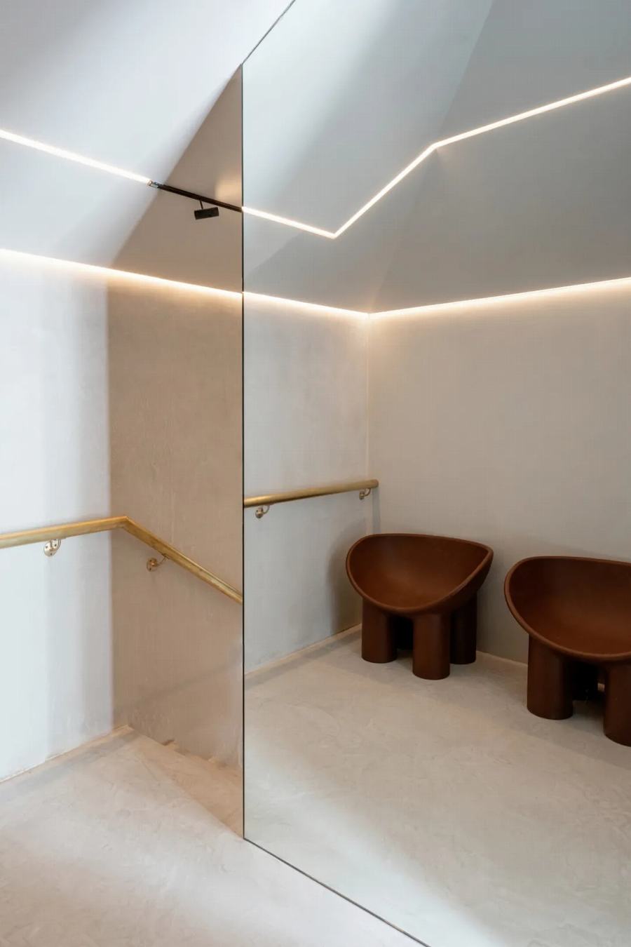 在服务和自然元素的影响下,新设计以一种邀请和体验的方式定义了零售和美容诊所的功能,空间布局引导你通过建筑的旅程,以及材料的过渡。这些空间和谐地并排坐着,将游客茧在一个温暖的、有触觉的和平静的环境中。
