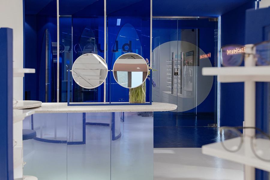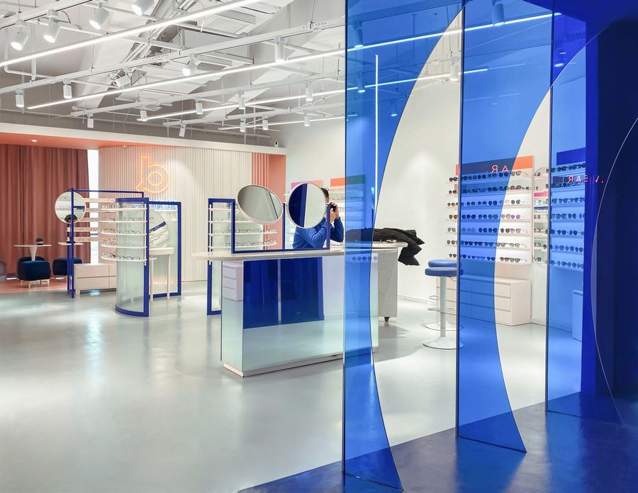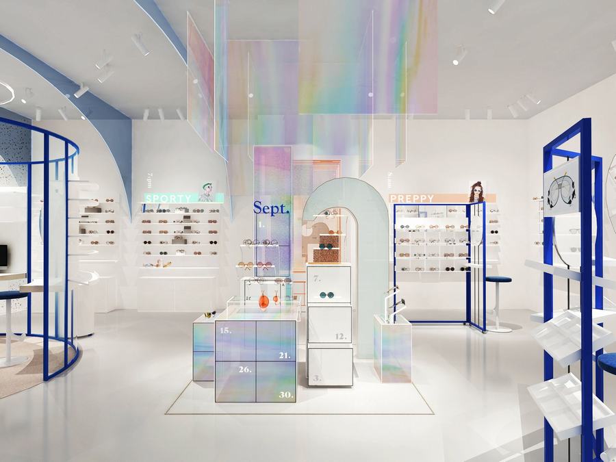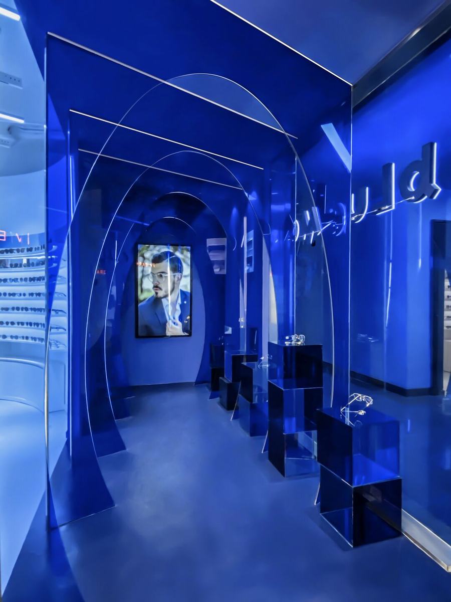 BLUEMO成立于2019年,愿景是成为中国最时尚、最专业的眼镜品牌。ICD承担了BLUEMO的品牌塑造,将品牌形象转化为店铺设计和所有视觉展示,并以“我穿,我在乎”为精神口号。