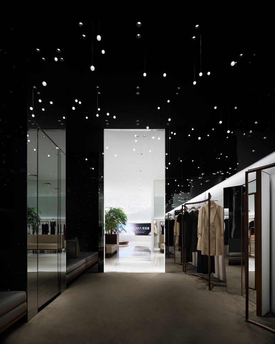 最后,在商店后部的贵宾室,灯光分散在不同的高度和距离上。在这里,灯光也给昏暗的房间带来了一种梦一般的气氛,仿佛游客自己就悬在星座之间。