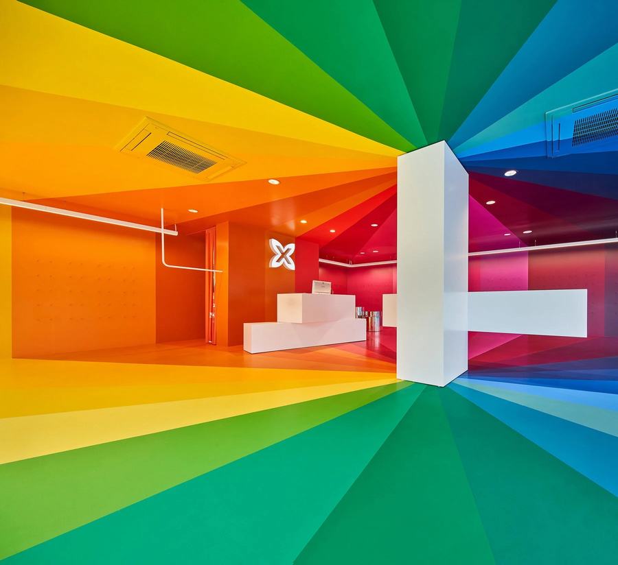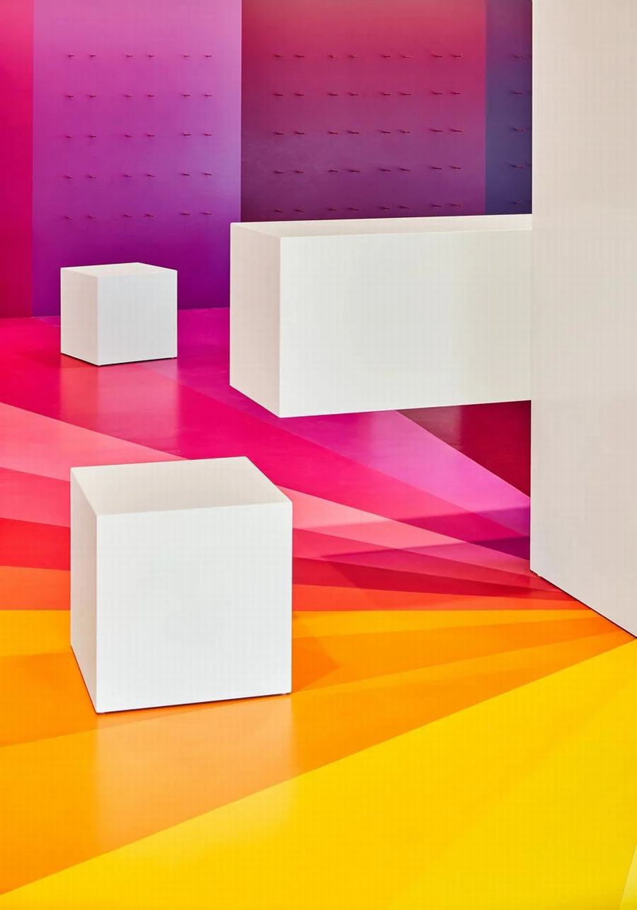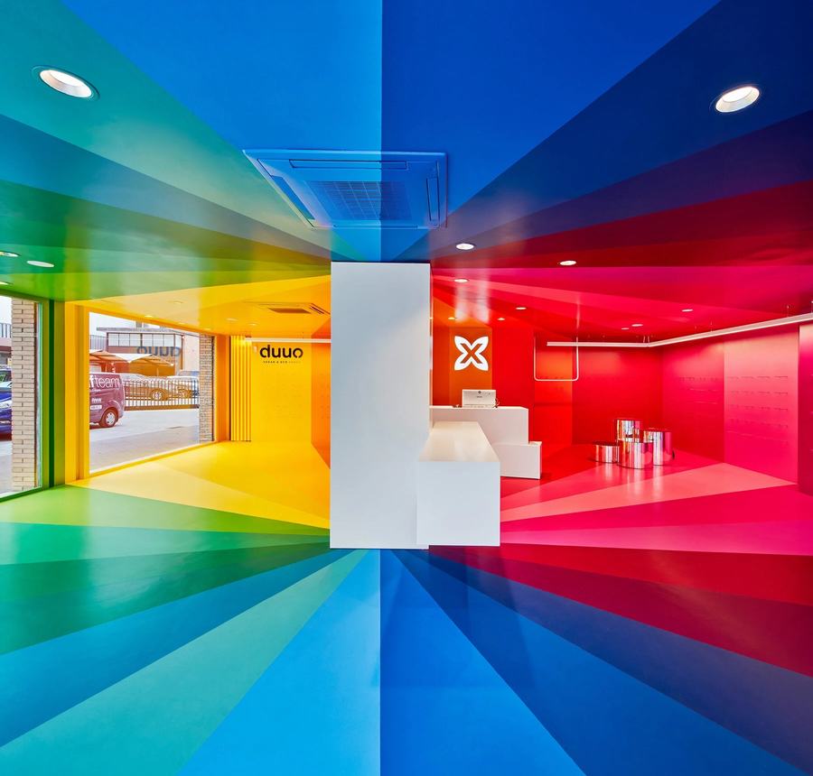 此外,彩虹色产生了多重空间体验,当购物者在商店周围走动时,引发了不同的感觉:从冷紫色和蓝色到暖色橙色和阳光黄色。