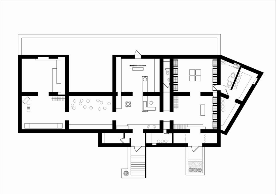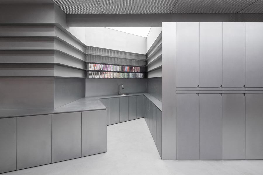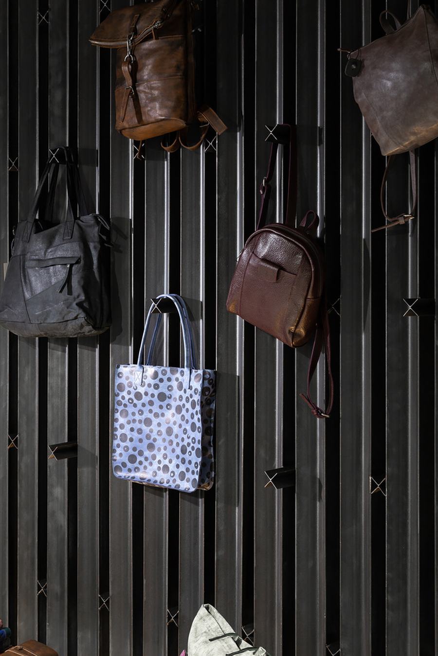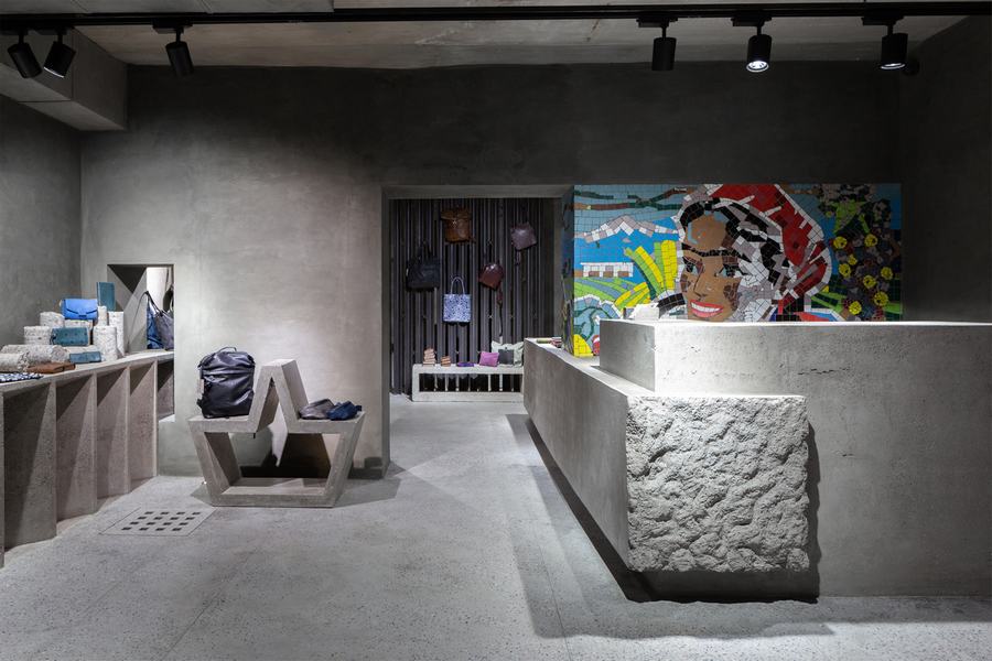 主要的想法是将塔什干的现代主义建筑转移到商店的内部,这样房子的外部和商店的内部看起来是有机的。在商店的中央部分,有一个附属区域和一个收银台。店铺左边是皮具区,右边是带小庭院的服装区。