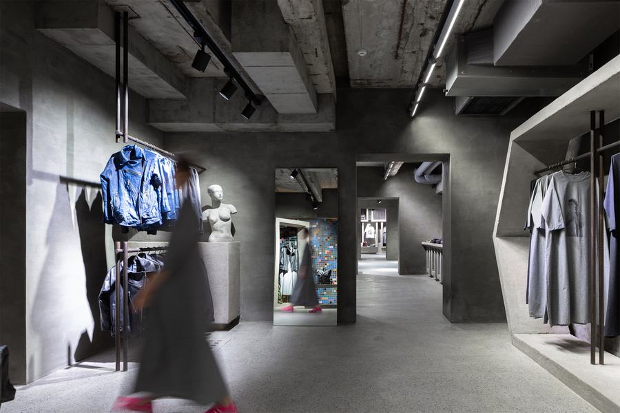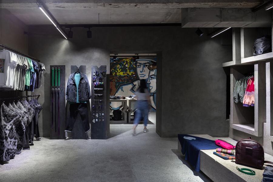 Kanishka服装和配饰品牌店位于塔什干市中心一座9层住宅楼的地下室。这家商店的布局很规范,有很多管道,没有窗户。