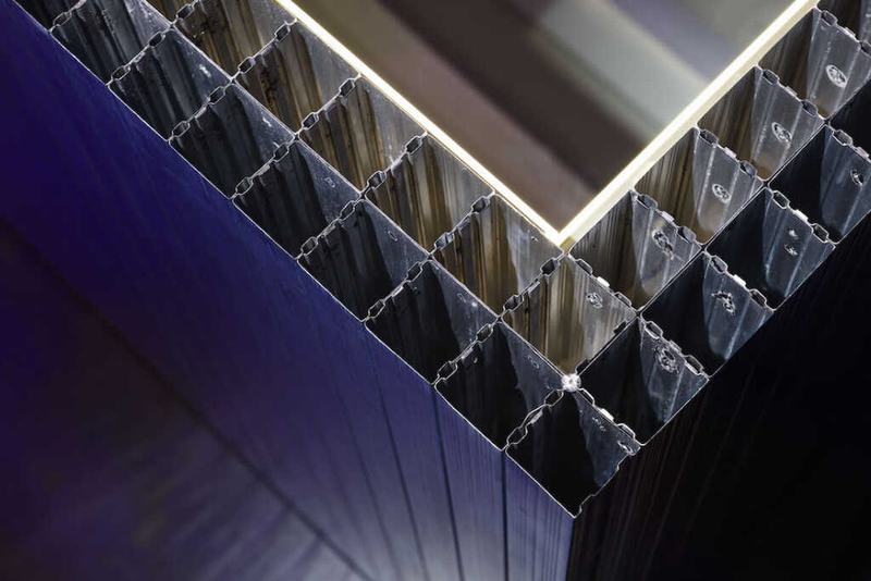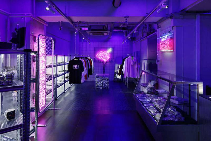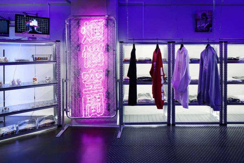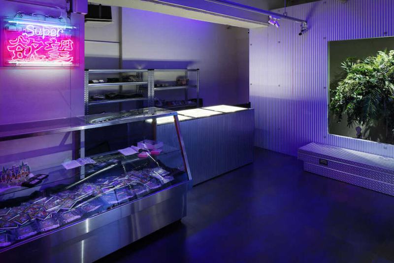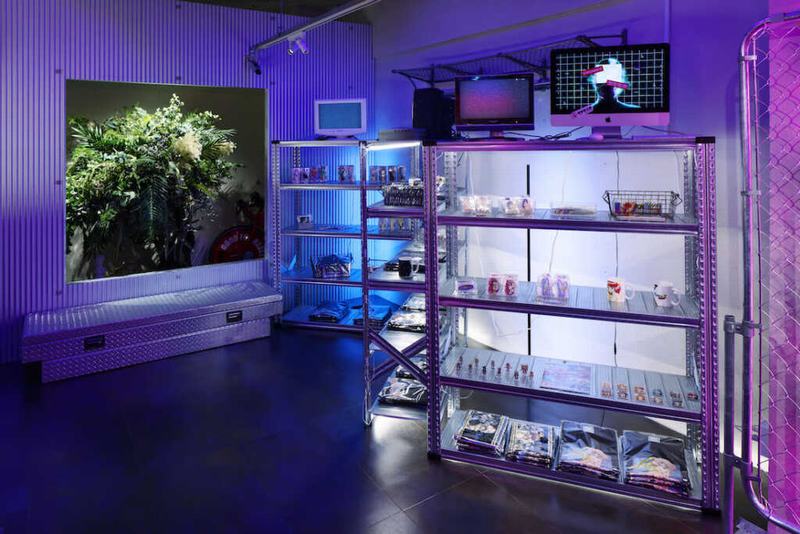 为了打造参照秋叶原迷人都市的店铺,以“光”、“反射”、“即物性”为关键词组成了内部装潢。通过配置色彩鲜艳的霓虹灯所发出的妖艳的光和其反射的即物金属(波板钢板、角堆叠物)和无机质的瓷砖来体现。另外,在妖艳的霓虹灯中加入了“植物”“拼贴画”“网格”的元素,使之更接近2010年代初网络文化中被称为“weyper weve”的视觉形象。