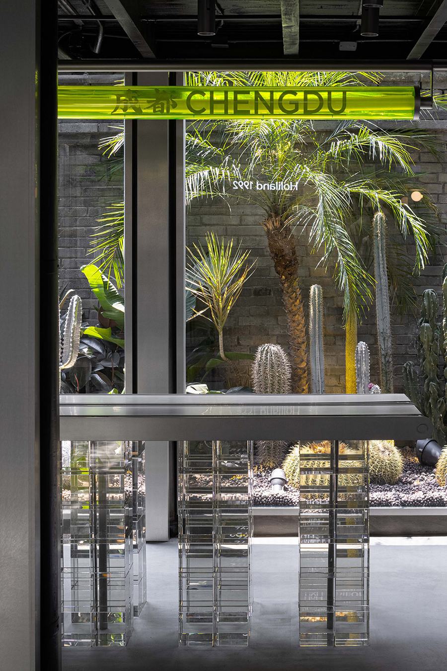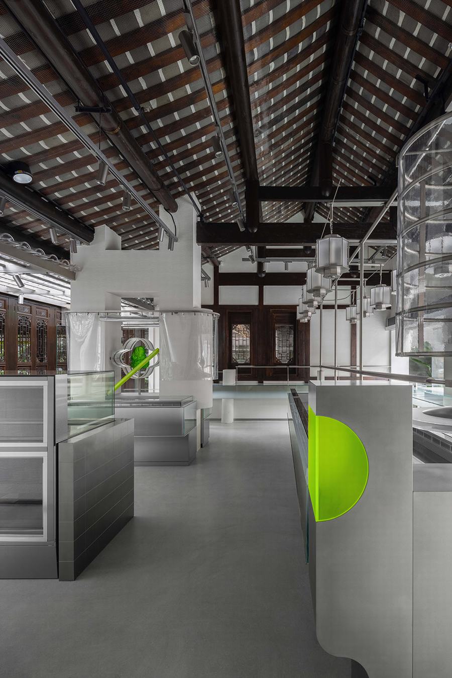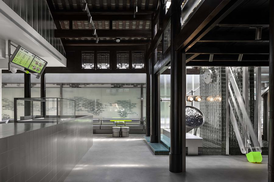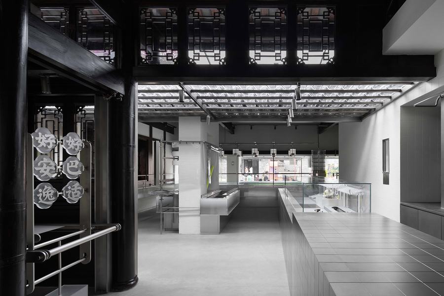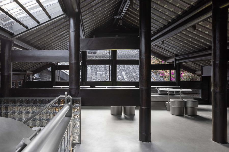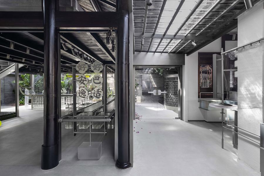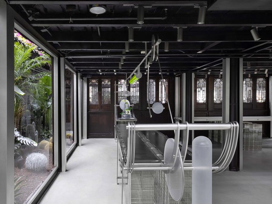 面对传统向现代性的提升所赋予的普遍性,一些思想期望赋予内部全新的秩序,并被公众重新理解和接触。玻璃砖作为过滤器引入光线,与整个空间中材料的粗糙感相得益彰。随着时间的推移,光线在空间中的折射和漫射,呈现给参观者一种千变万化的并置感。