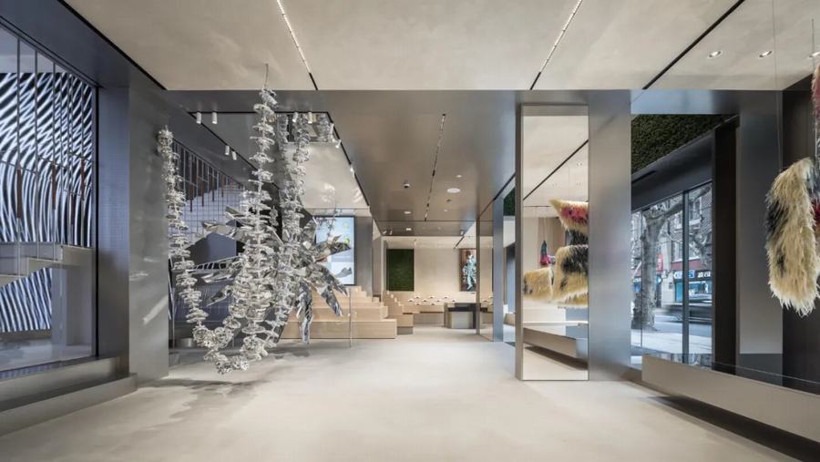 设计师在开发商店时遵循了一个被称为“都市梦境”的主题:安装了模块化照明系统,使室内在视觉上更具适应性,使顾客能够体验“多维度”。这种奇妙的环境背后的想法是激发顾客之间的自由移动和互动,作为一种公共客厅。