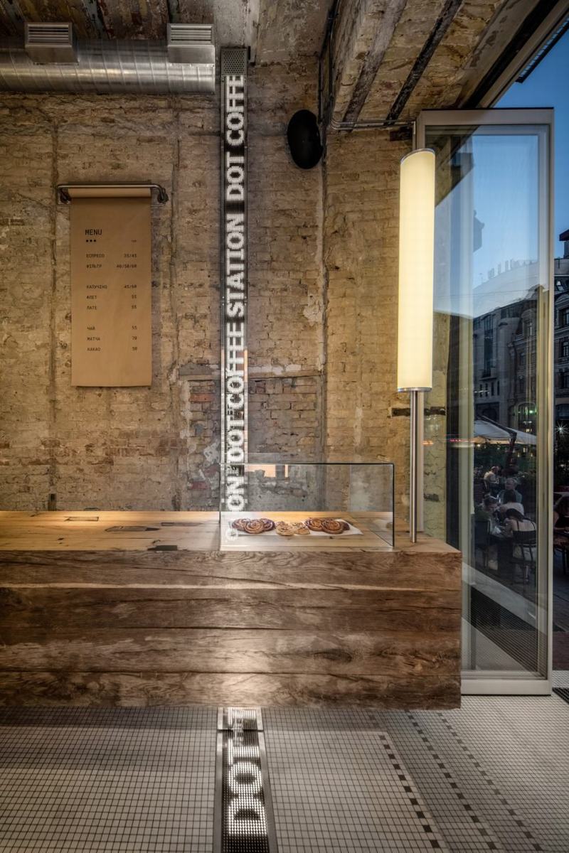 DOT 咖啡被特别定义为咖啡站而不是咖啡店,它有一个狭窄的、墙洞式的吧台,专为人们在路上喝一杯而设计。滑动玻璃门形成了一个“透明立面”,旨在邀请人们进入。一个从旧谷仓重新使用的木梁组成了DOT 咖啡的吧台,而原始暴露的砖墙与空间的中性色调融为一体。
