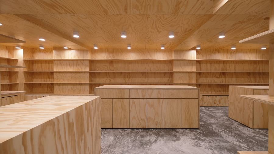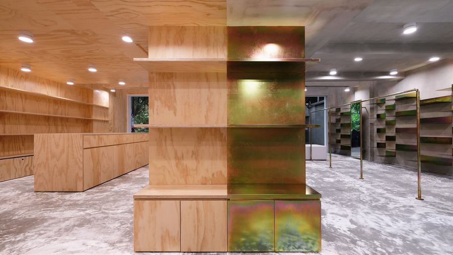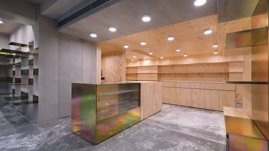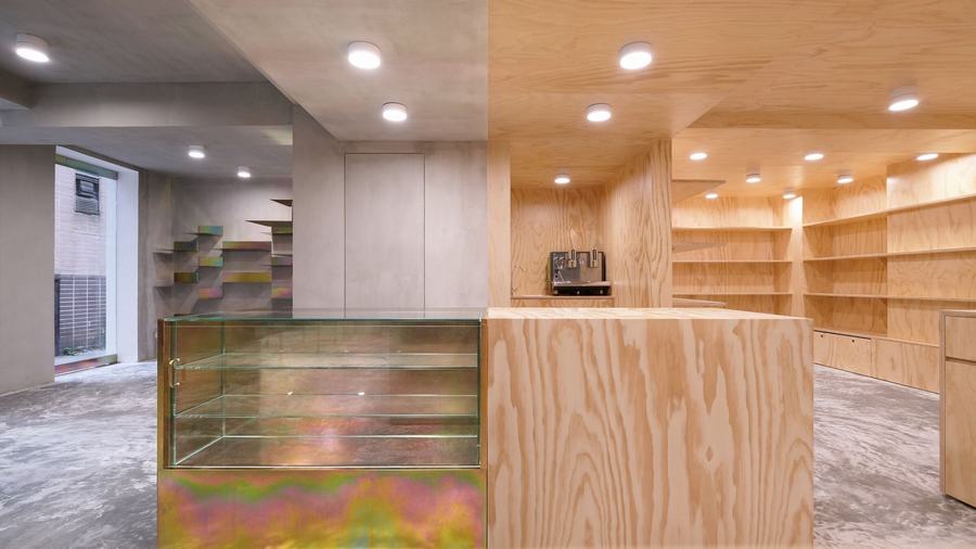 我们拆分了这个项目,打开了两个入口,时尚位于它以前向东的 St Francis 院子里,而生活方式则位于它原来的 Westside Sun Street。商店的内部循环是相连的,但这种二元性直观地要求使用两种不同的饰面,水泥搭配铬化钢用于东方时尚,完整的胶合板外壳作为Kapok 旗舰的新调色板用于西方生活方式。