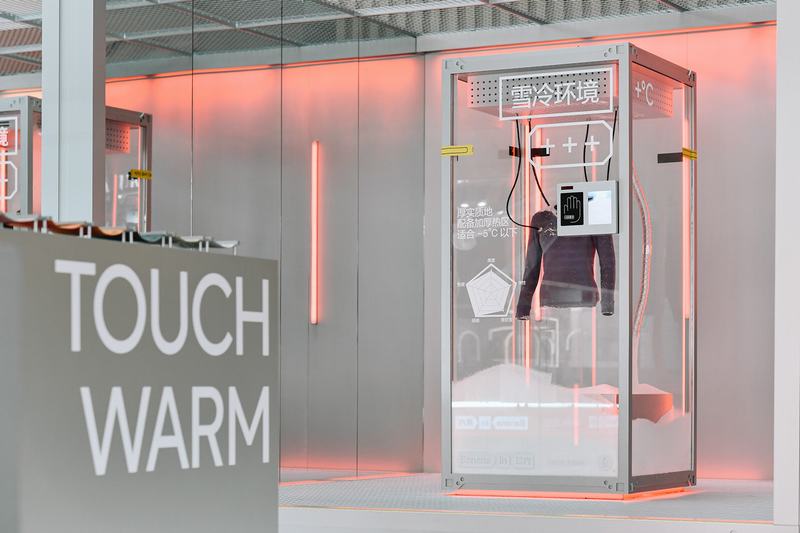 这场快闪还设置了热皮的面料展示区,供体验者亲手触摸、感受。