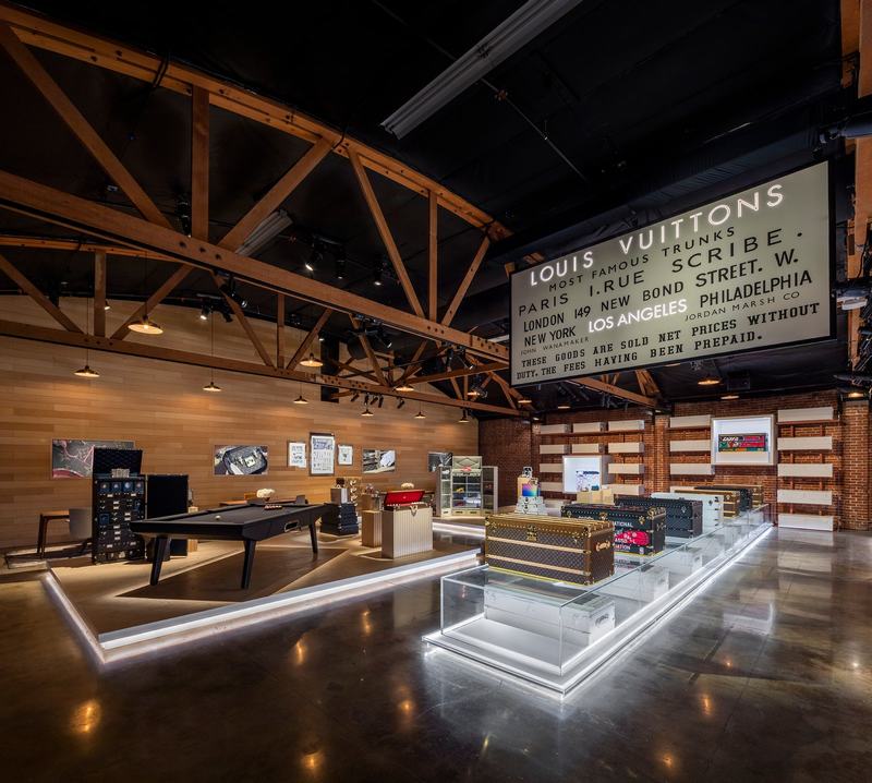 向历史悠久的路易威登工坊致敬,展示了该品牌标志性的硬面行李箱、箱子和行李箱,包括由小牛皮制成的 LVXNBA 行李箱,重现篮球的外观和感觉。在其他地方是一个提供六人完整茶水服务的 High Tea Trunk,以及一个带有透明有机玻璃会标门的运动鞋后备箱,用于展示珍贵的踢腿系列。