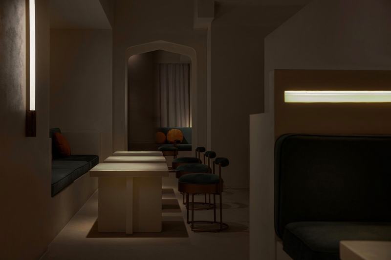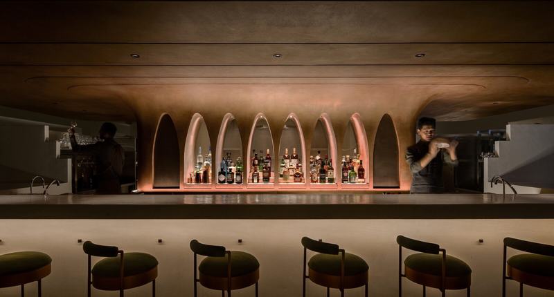 被设想为一个结合的空间;这是一个创造美好回忆的空间,酒吧是为在繁忙的城市中寻找天堂的好奇的流浪者策划的。由香港NC design & Architecture工作室设计的场地,以一个特别的Bait-al-Sha ‘ar招待会为主导,唤起了亲密和感官的比例感。当窗帘拉开时,昏暗的灯光唤起了一种神秘和想象的感觉,到达了这个隐藏的绿洲。中东风格的拱门、喷泉和各种剪影给传统的中东建筑和景观带来了现代的变化。