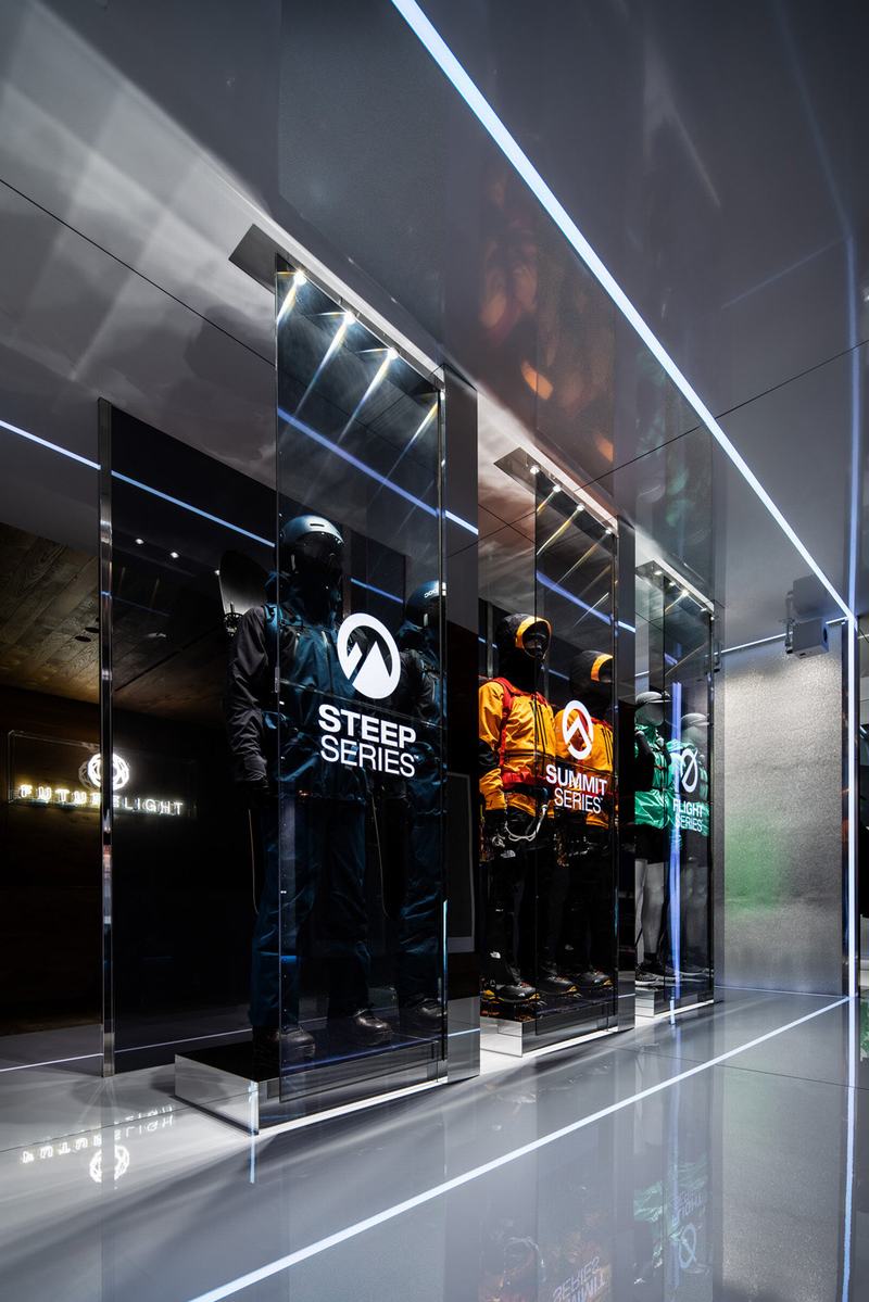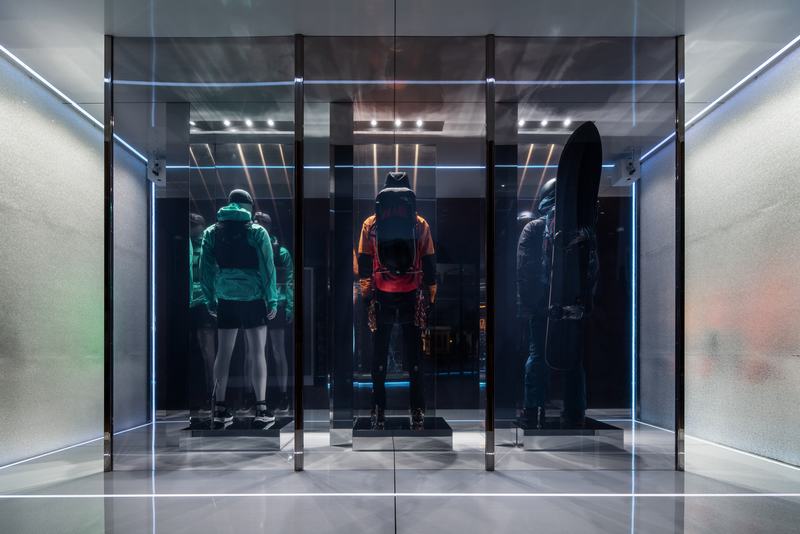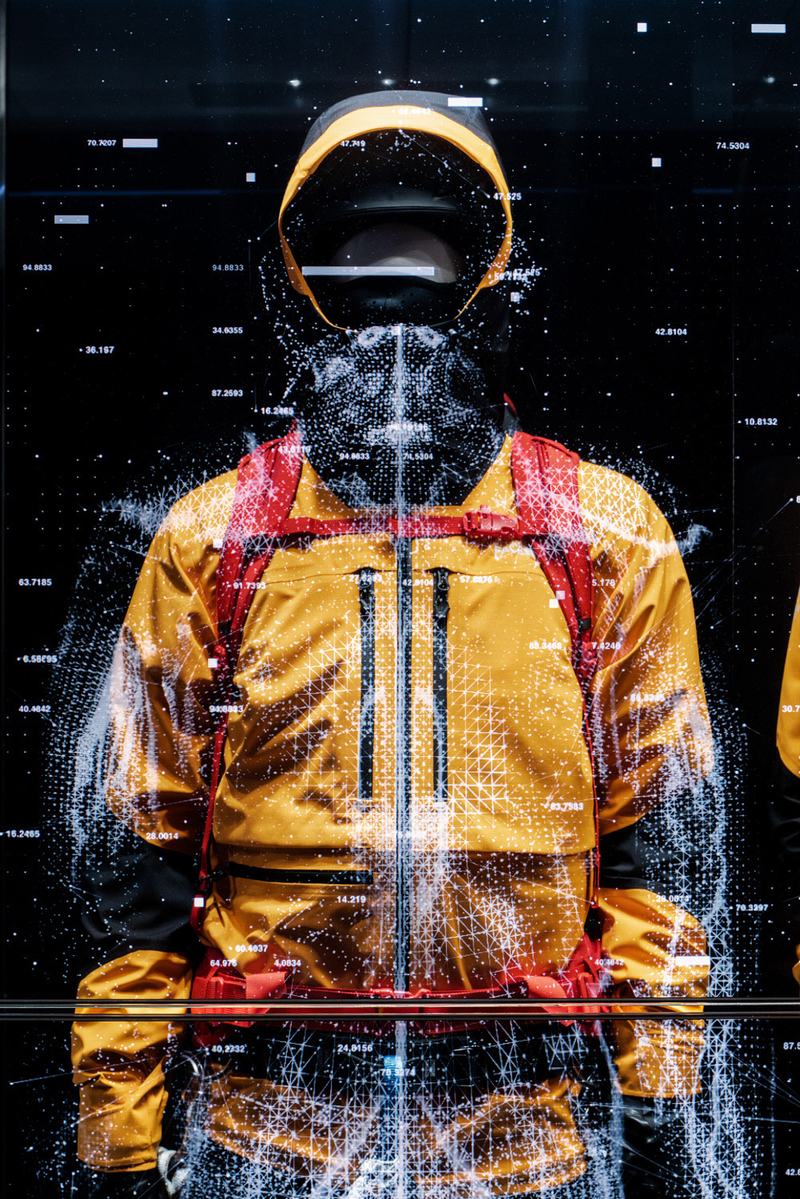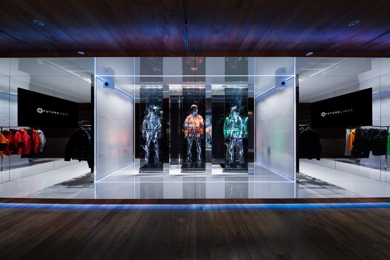 The North Face的FUTURELIGHT体验店位于东京,新店的设计充满科技感,设计师通过数字化的技术表现方式,突出了FUTURELIGHT面料的优越性(FUTURELIGHT材料的另一个主要优点是,它不仅限用于“ 雨衣 ”。薄薄的纳米纺丝层可以粘合到各种不同的织物上,几乎使任何服装都能完全防水。FUTURELIGHT的出现 ,使其以后能在更多的服饰上实行防水功能,比如瑜伽服、皮衣等等。)