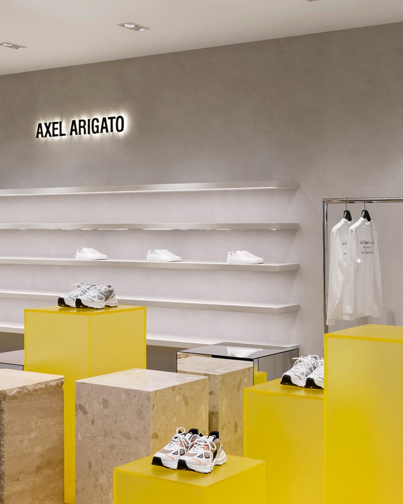 继去年 6 月在法国首都开设了旗舰店后,瑞典运动鞋品牌Axel Arigato在奢侈品百货公司之一老佛爷百货公司开设了一家店中店,店中店位于老佛爷百货男装大楼的二楼,店铺两侧是 Giuseppe Zanotti、Heston Preston 和 Etudes Studio 的品牌店。室内设计是由斯德哥尔摩建筑师 Christian Halleröd设计。