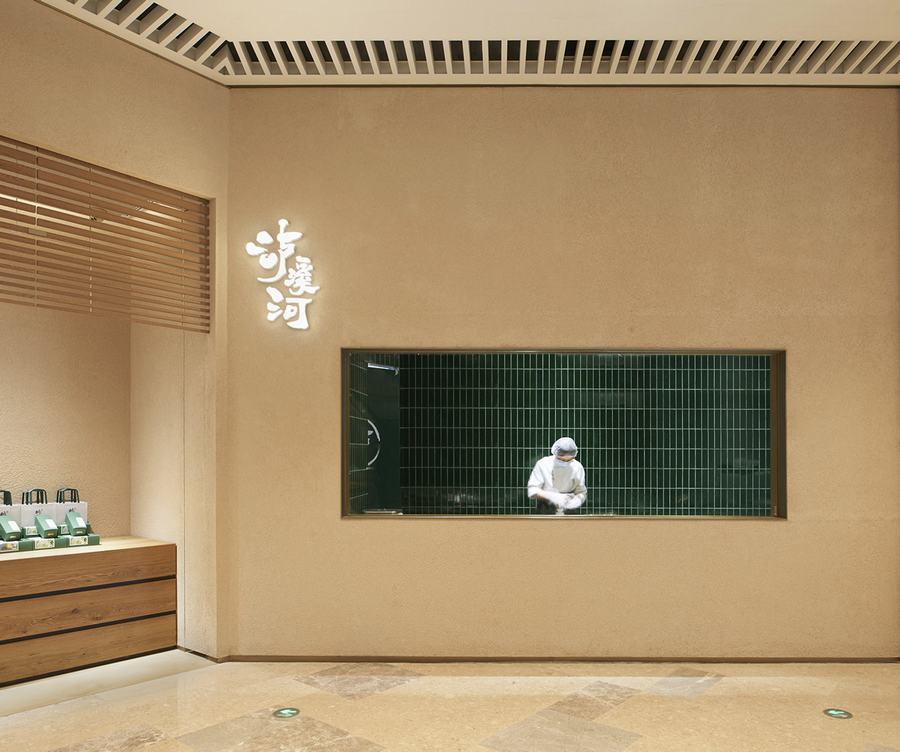 泸溪河是一家在中国很受欢迎的烘焙店,每天在店内烘焙各种新鲜的中国传统糕点。该店的室内设计曾以中国园林为主题,大胆地使用了该品牌的深绿色。虽然店面设计得很好,可以作为一个面包房,但人们总是不可避免地会感受到连锁商店的标准化氛围。很难感受到现场烘焙和销售的温暖和面包师的细心。
