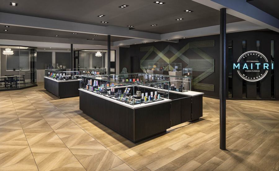 Maitri Medicinals 希望继续致力于为新兴的宾夕法尼亚州cannabis产业的患者提供服务,并支持当地社区的复兴。High Road Design Studio 团队与业主合作,在匹兹堡市中心开设了第二家药房。面临的挑战是将 Maitri 品牌带入现有的两层建筑中,该建筑以前是医疗办公室。