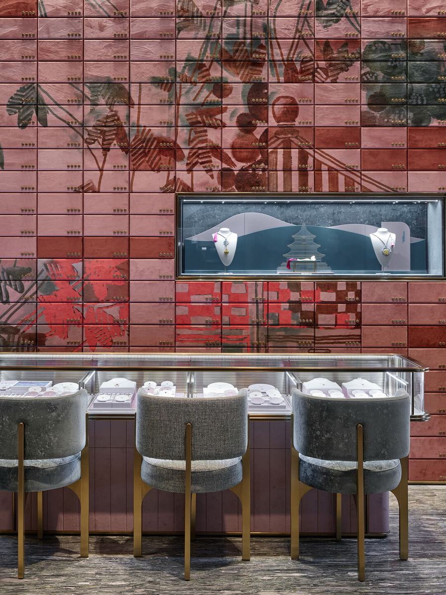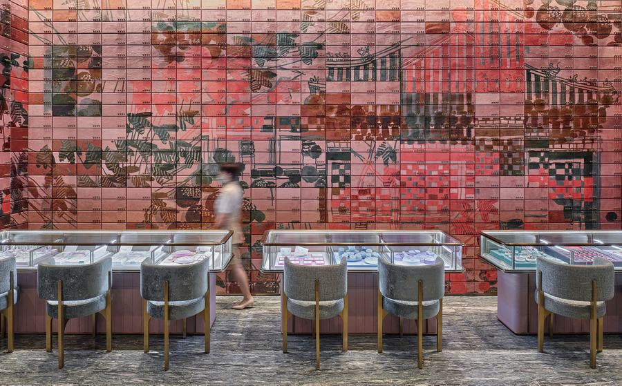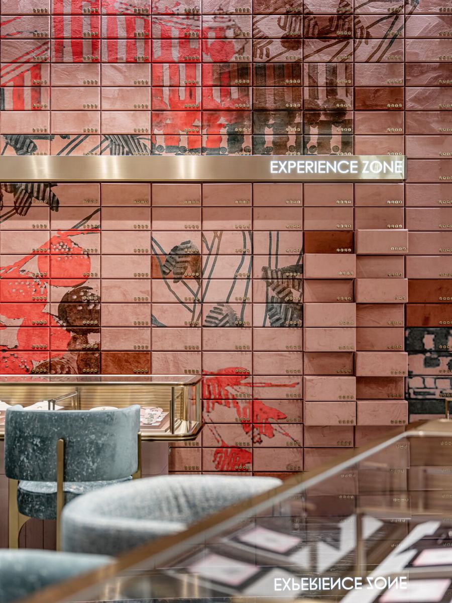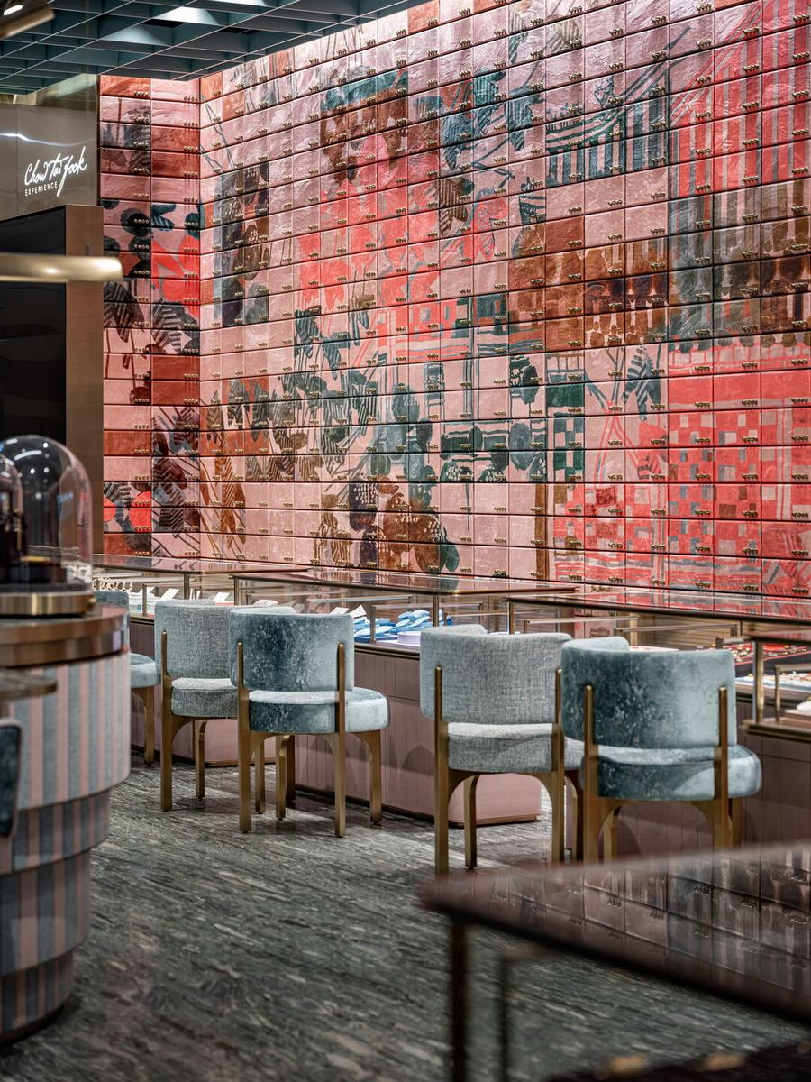 周大福在中国北京开出了最新的店铺,新店的设计理念结合了中国文化的特点,设计很好的将古代元素和现代进行了融合,店铺在设计上结合了北京城市的特点和文化。