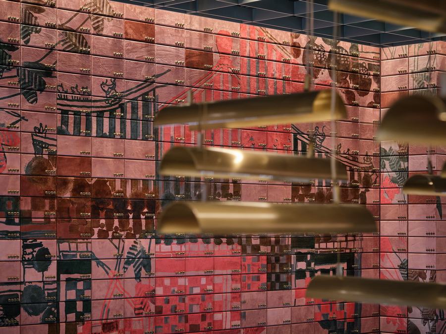 设计师经过讨论决定,最终选用古典皇家园林的元素作为整个空间的设计主题,灵感来自于北海公园和故宫御花园,设计师通过现代的绘画手法勾勒出北海公园和故宫御花园的画面在整个墙壁上。