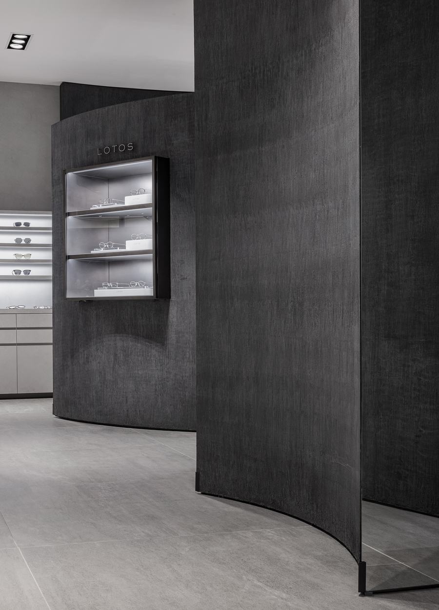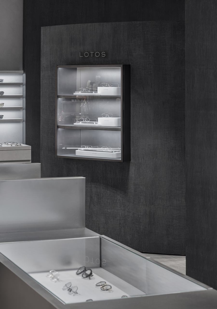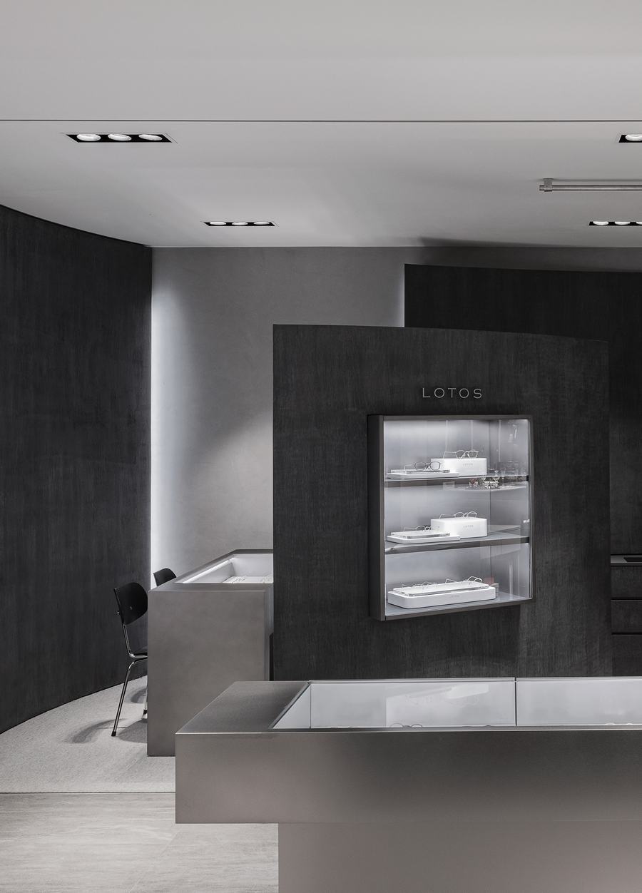眼镜是整个简约内部的最核心的东西,它的外观由粗糙的纹理和不锈钢并列,黑白配色方案和不同尺寸的墙壁——直的,凹的或凸的,结构是对光学镜片本身的一种新的诠释。